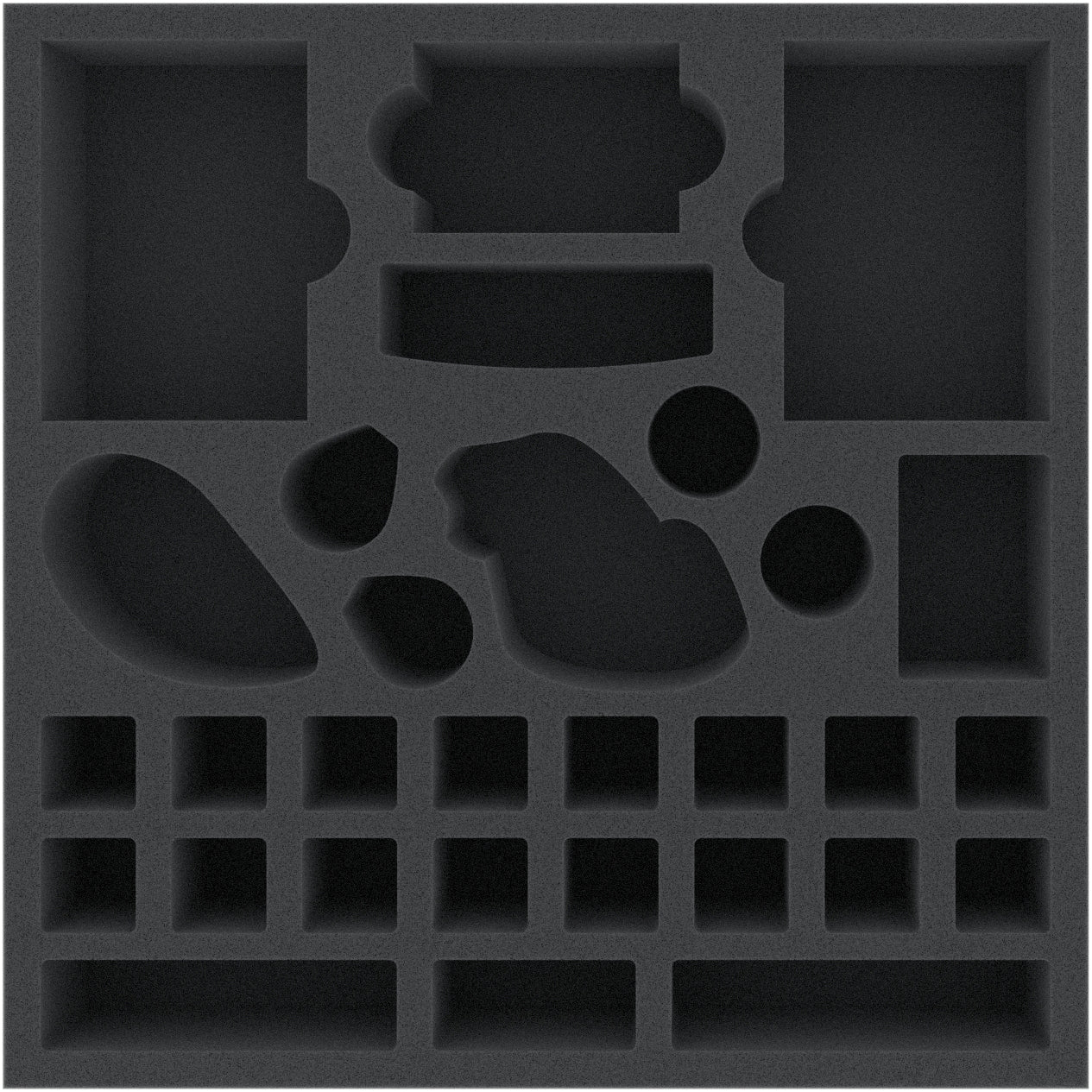 Cet insert en mousse est divisé en 30 compartiments de différentes tailles. Il est idéal pour ranger en toute sécurité les figurines de héros, de monstres et de guerriers de divers jeux de société ou systèmes de table. Le matériel de jeu, comme les cartes, les jetons et les dés, peut également être rangé proprement ici.