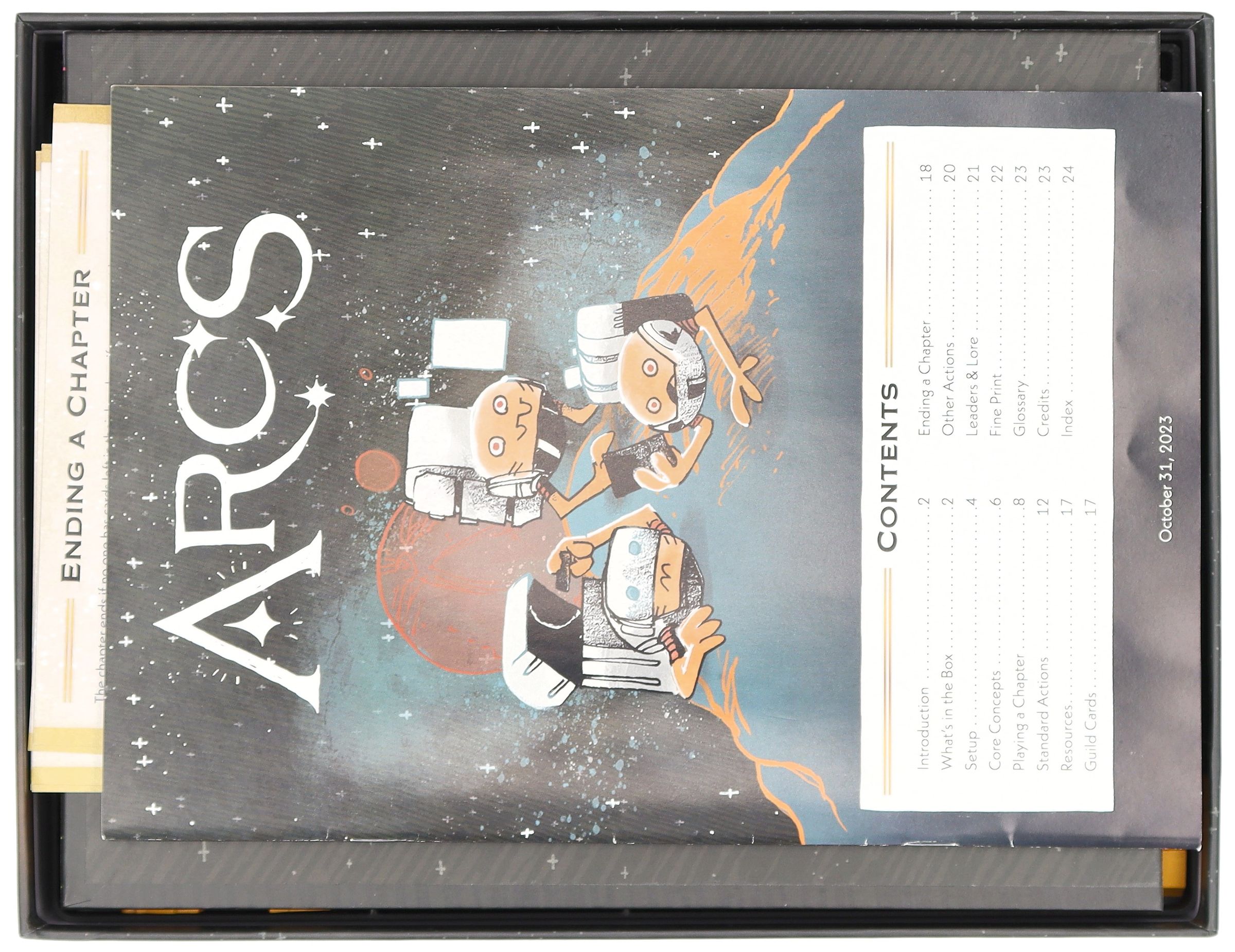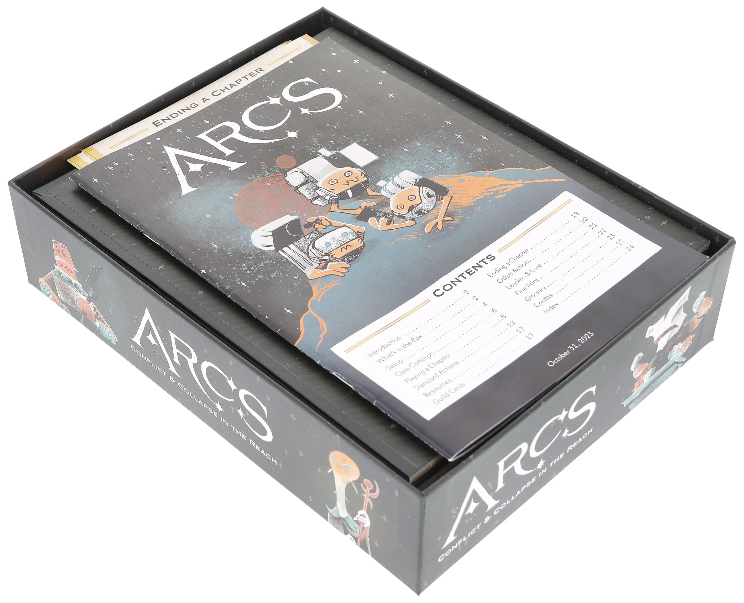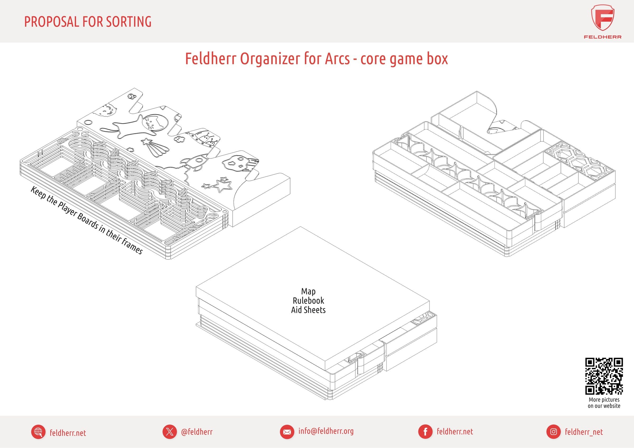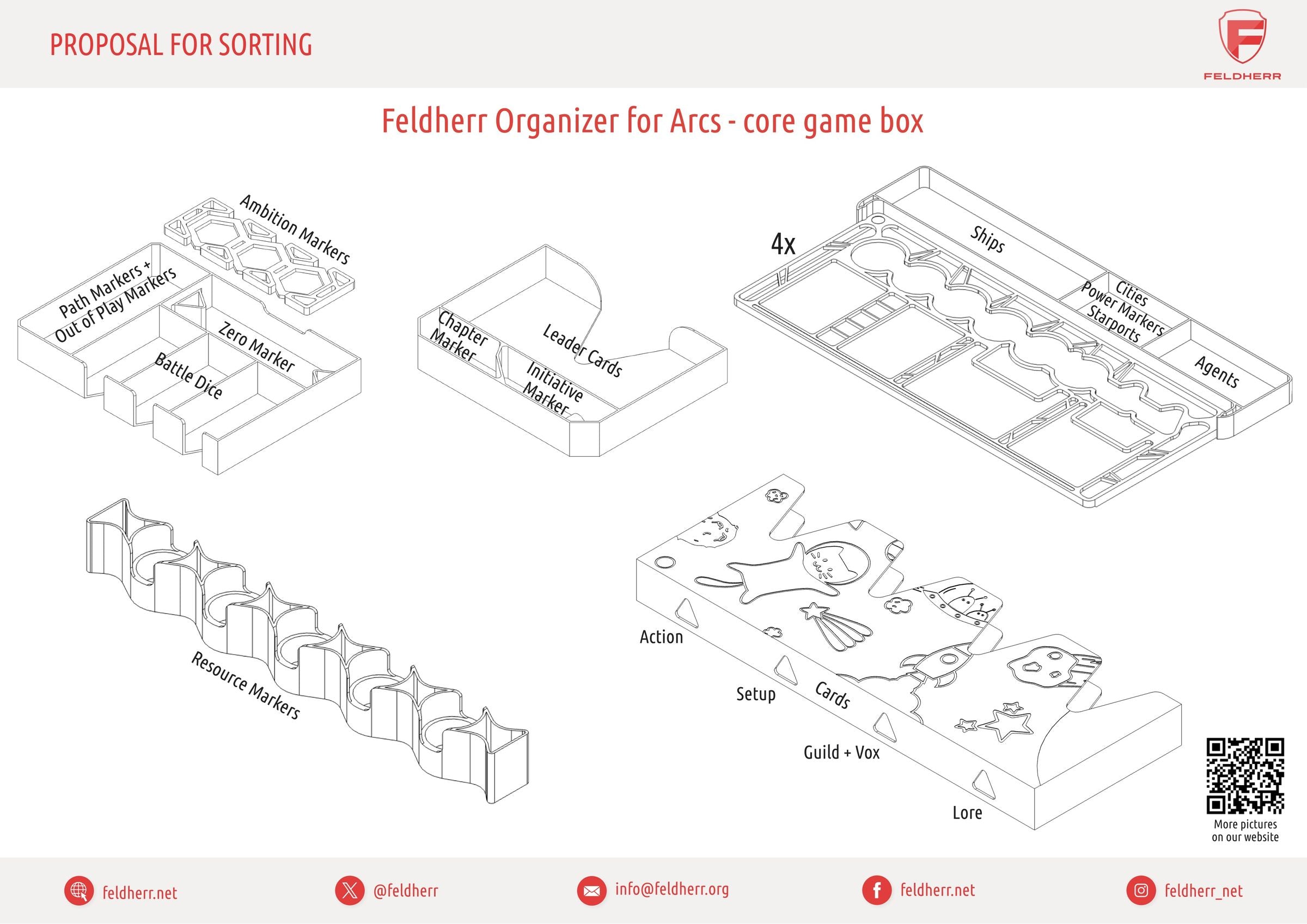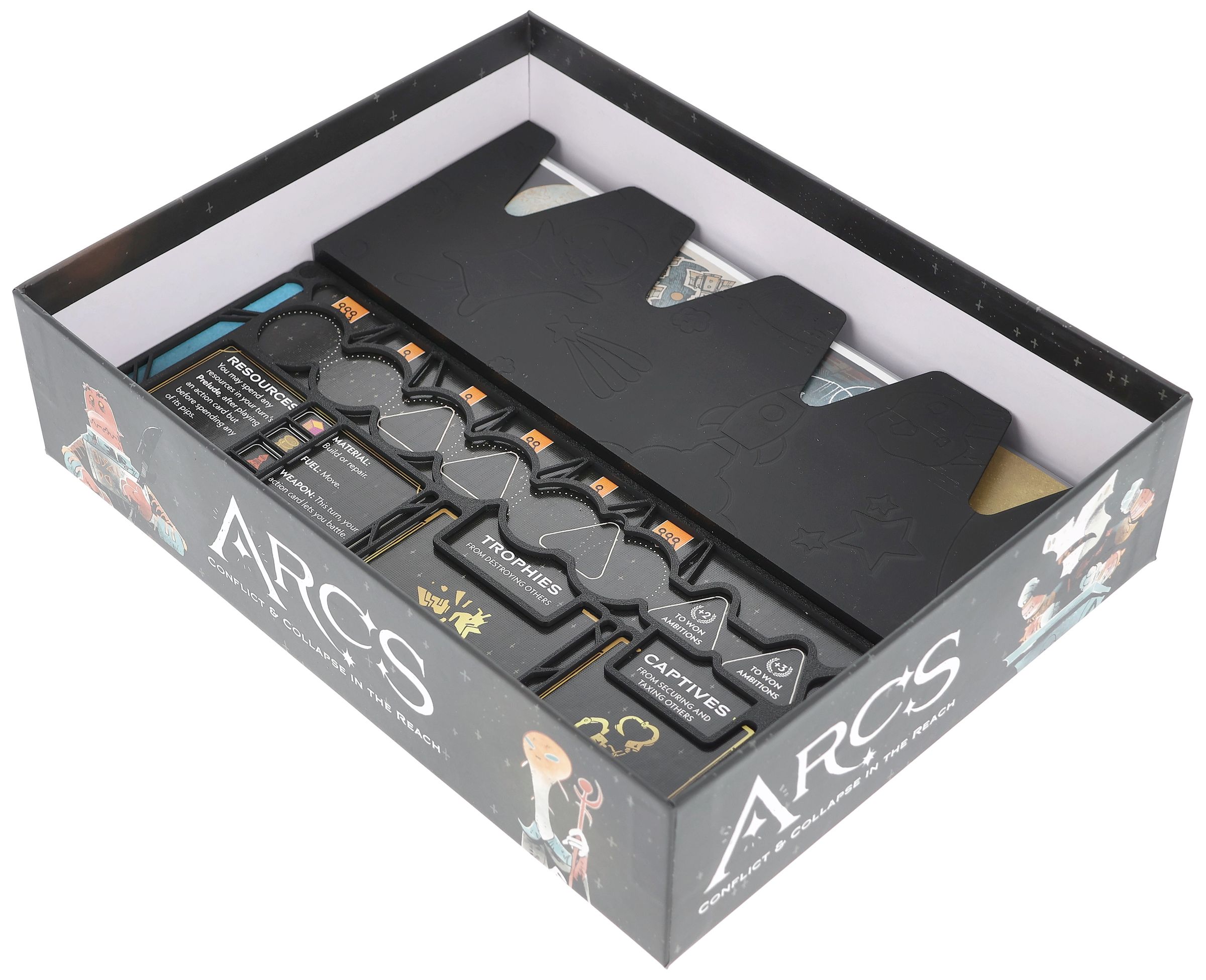 Arcs vous emmène dans une aventure spatiale épique pleine d'intrigues, de jeux de pouvoir et de décisions. Nous voulons que vous puissiez vous concentrer entièrement sur la stratégie et l'histoire, c'est pourquoi nous avons créé ce Feldherr Organizer Insert + Game Aid pour fournir une structure claire dans la boîte et une aide précieuse à la table de jeu - pour une installation plus rapide, une meilleure vue d'ensemble et une expérience de jeu améliorée.