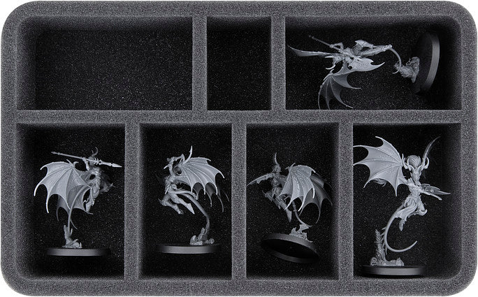 Cet insert Half-Size mousses de rangement peut accueillir jusqu'à 7 figurines de votre armée. Il est idéal pour les Khinerai Lifetakers, Khinerai Heartrenders ou des figurines de dimensions similaires.