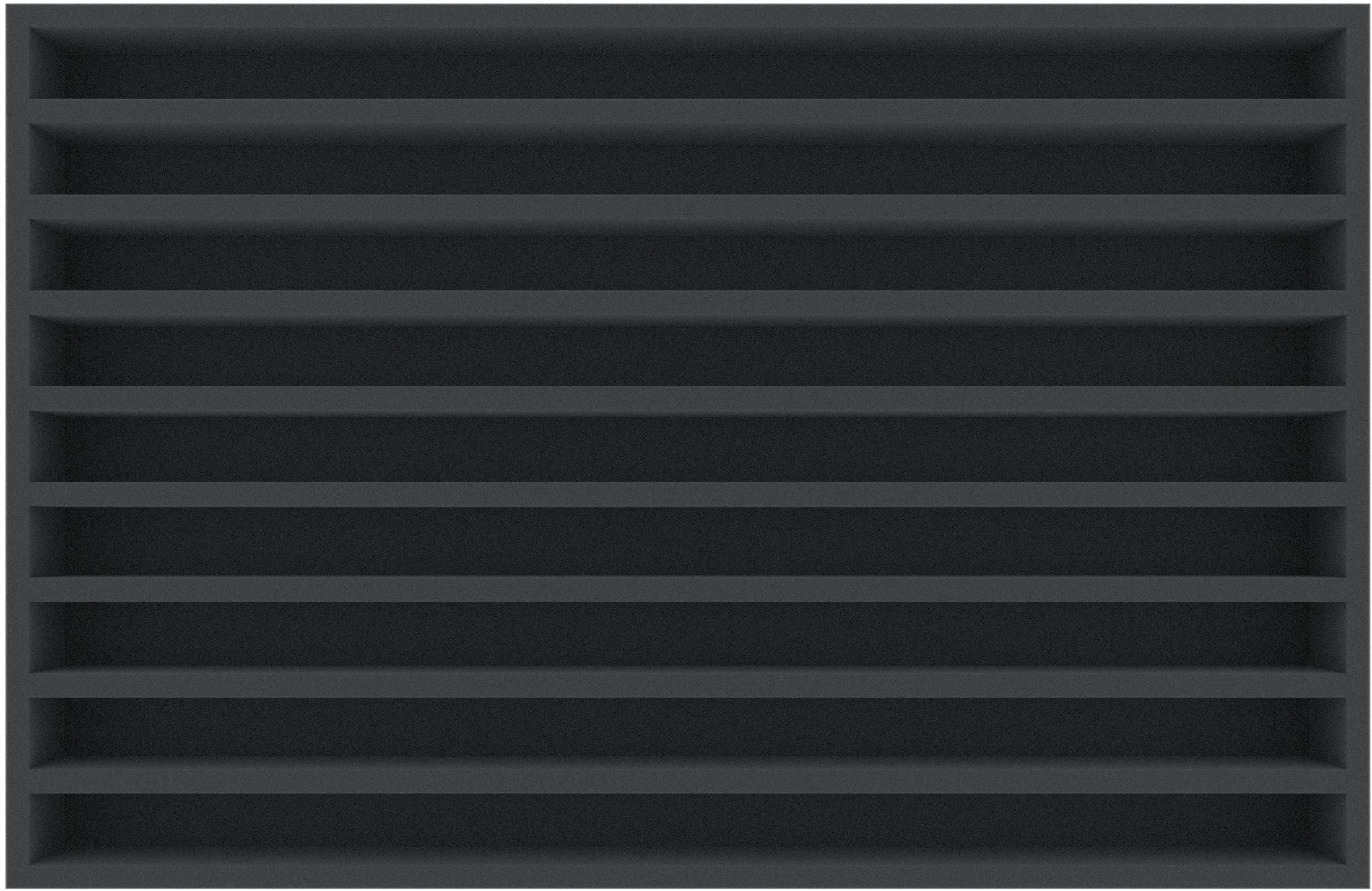 - Chacun des 9 compartiments mesure 550 mm de long x 30 mm de large x 40 mm de profondeur.