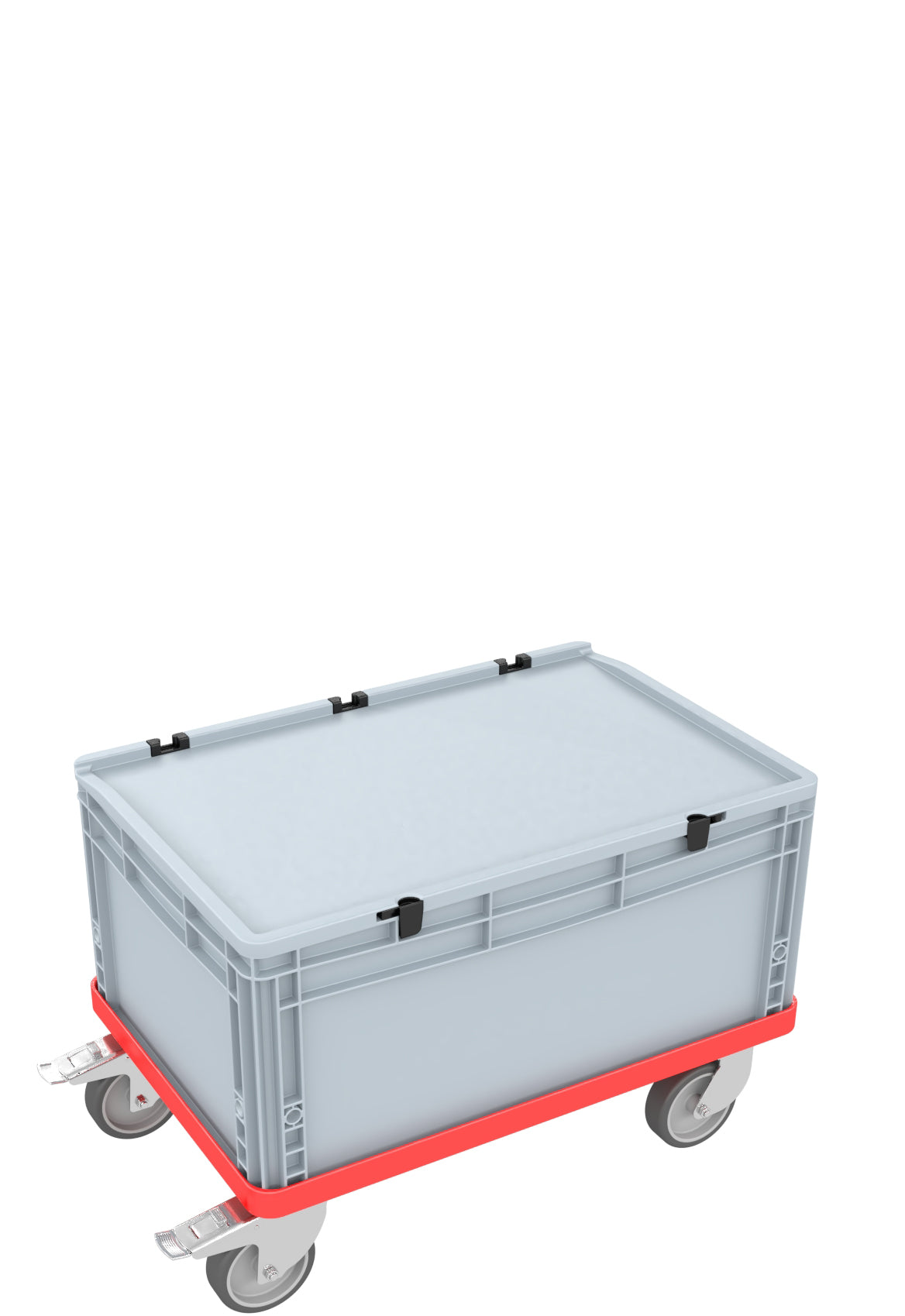 Chariot compact avec roues en caoutchouc rouge et butée de roue pour Euro Container jusqu'à 600 mm x 400 mm