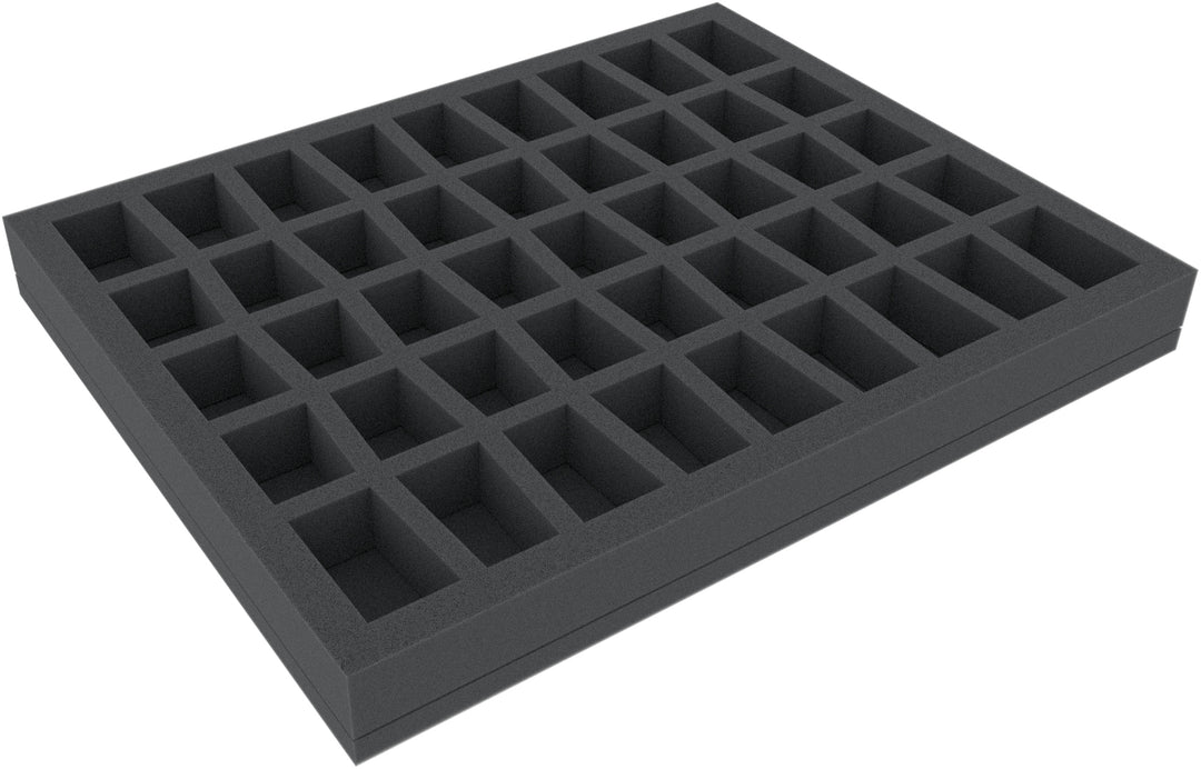 La mousse tramée est entièrement perforée, ce qui signifie que la grille de cubes est entièrement prédécoupée sur toute la hauteur de l'insert. Cette caractéristique permet de retirer très facilement les cubes individuels et d'ajuster la mousse précisément aux contours et à la taille de vos figurines et accessoires sans avoir besoin d'outils de coupe.