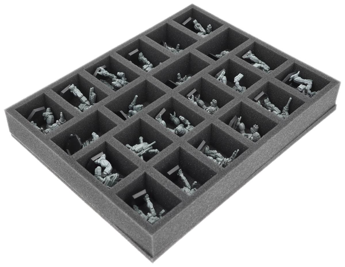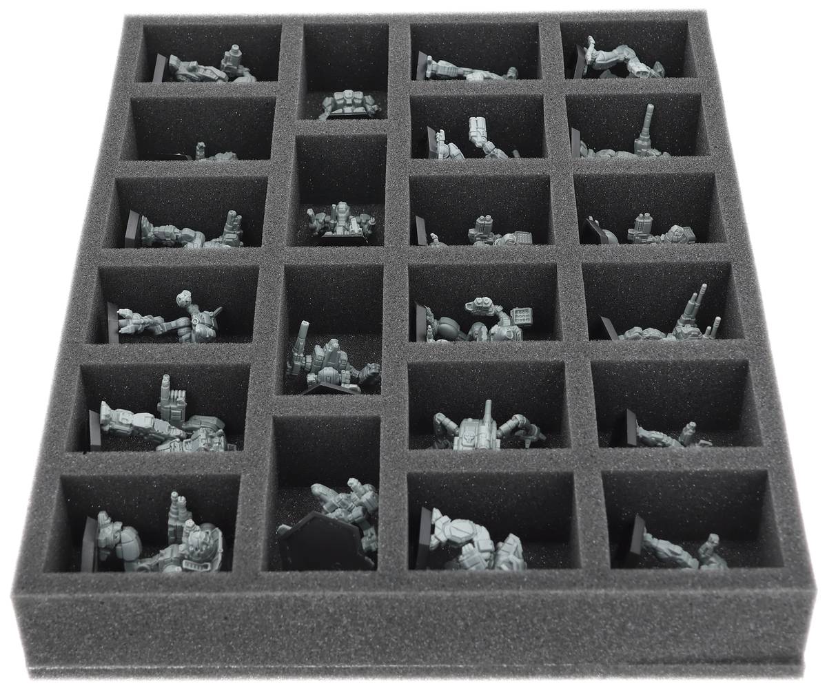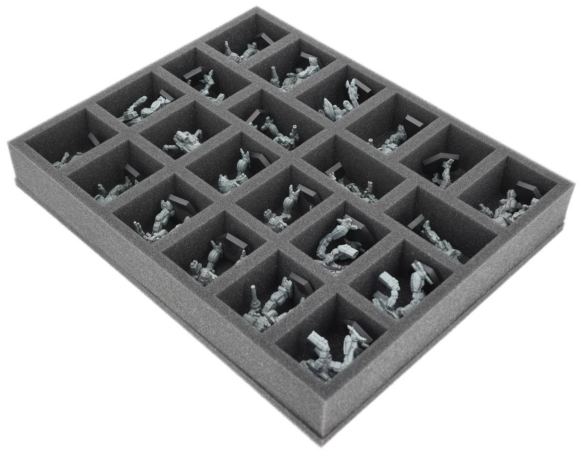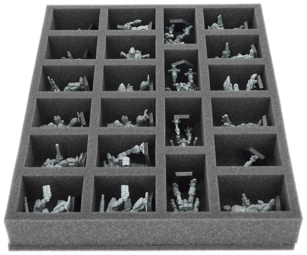 Diese Schaumstoffeinlage eignet sich mit ihren 22 unterschiedlich großen Fächern hervorragend um deine BattleTech-Miniaturen übersichtlich und bestens geschützt aufzubewahren.