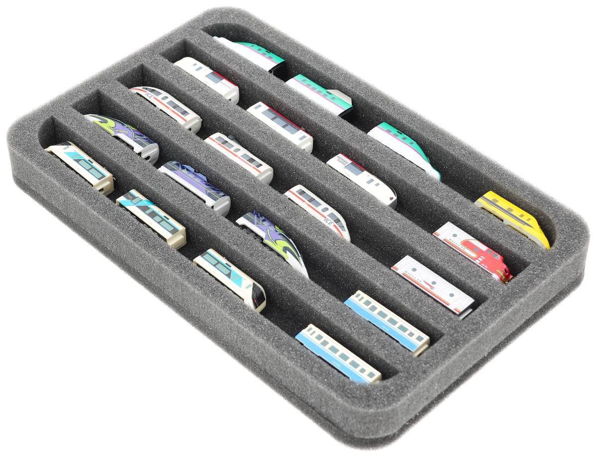 Winzige Abmessungen, große Faszination: Die Z-Shorty-Modelle von ROKUHAN holen das Maximum aus der Spur Z heraus und bringen selbst auf kleinstem Raum beeindruckenden Fahrspaß. Damit Ihre kompakten Loks und Wagen genauso sicher verstaut sind wie sie agil über engste Radien gleiten, bietet diese Feldherr Half-Size Schaumstoffeinlage die perfekte Basis.