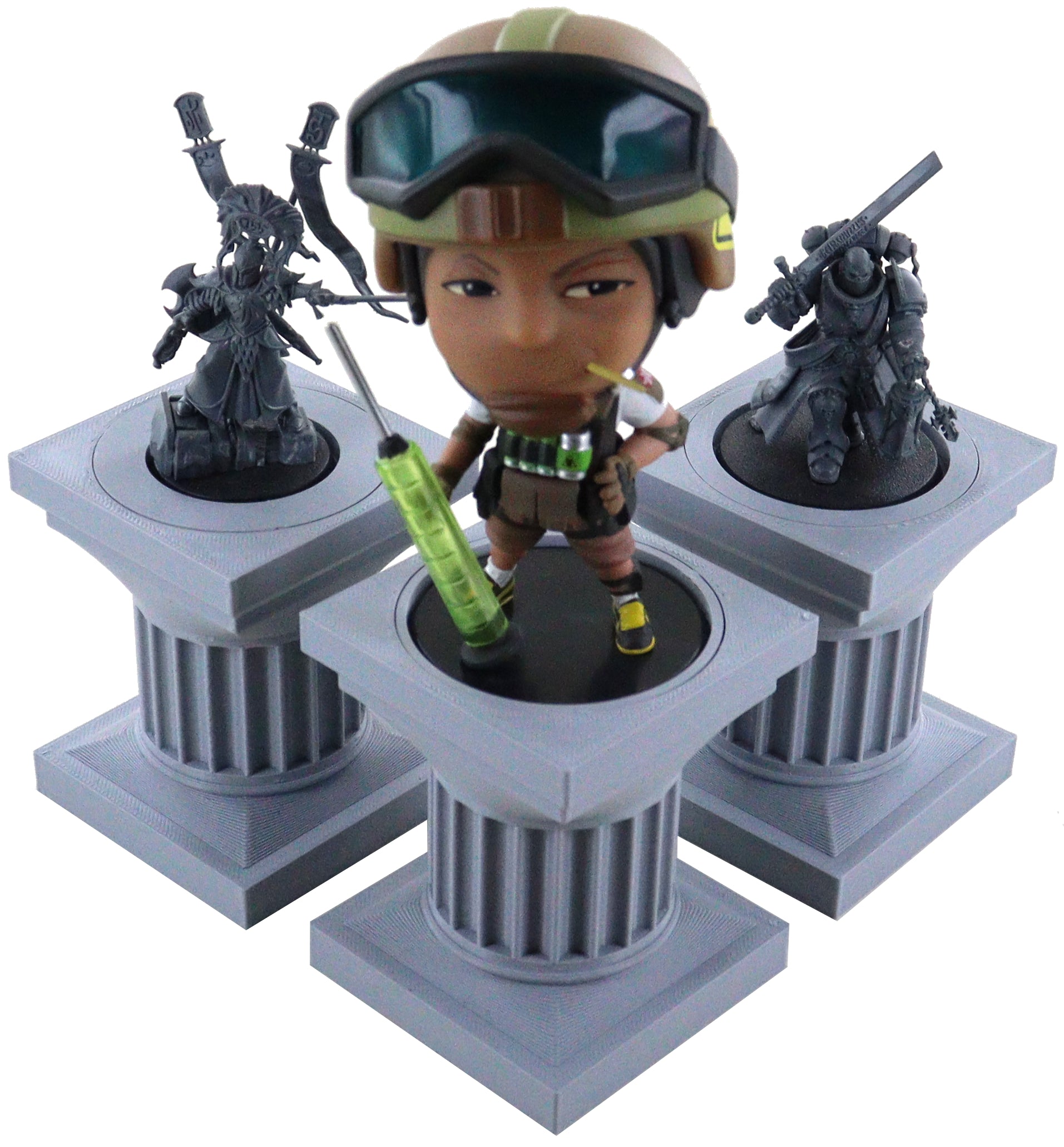 - 3 pilastri in plastica per miniature su base rotonda da 50 mm