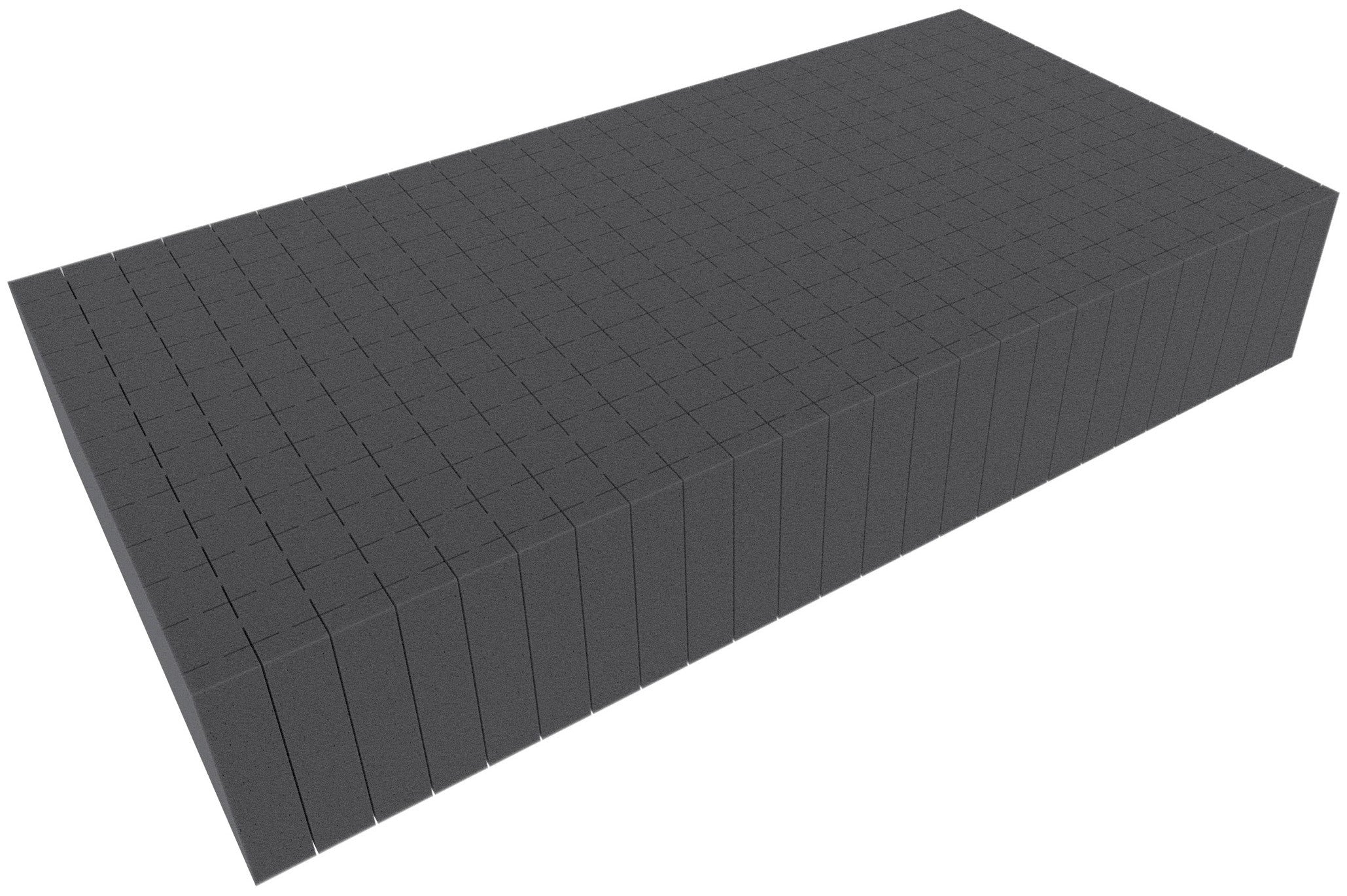 This 90 mm high Pick and Pluck foam features a perforated 20 mm x 20 mm grid and is ideal for items like small tabletop miniatures, flatware, and tools.
