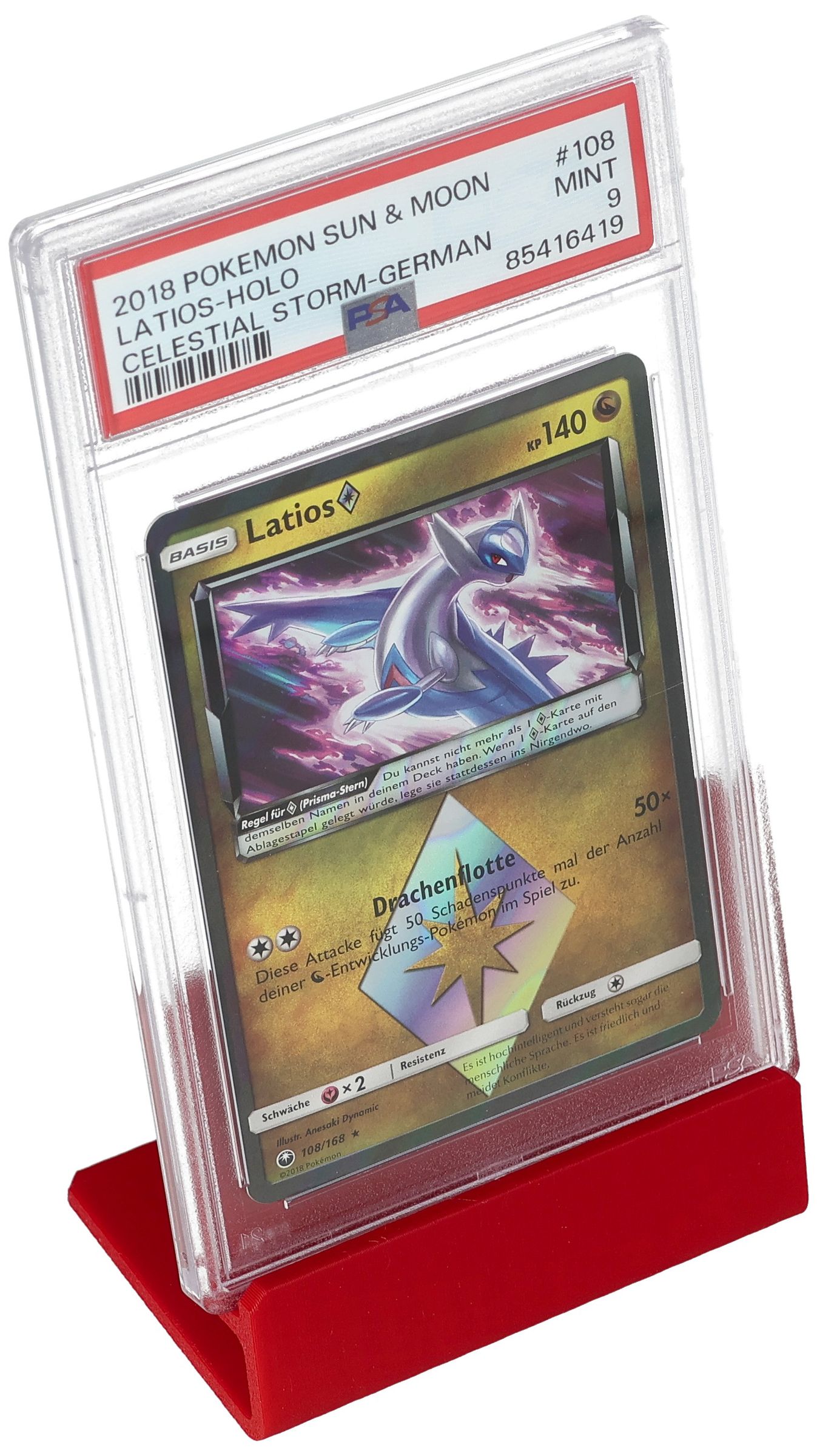 Il supporto è compatibile con gli espositori PSA, BGS, CGC, Ultra PRO ONE-TOUCH e con altre valigette di classificazione o caricatori superiori fino a 9 mm di spessore. Il suo design discreto non distrae la carta e la tiene ad un angolo ottimale di circa 10 - ideale per una presentazione verticale e leggermente inclinata.
