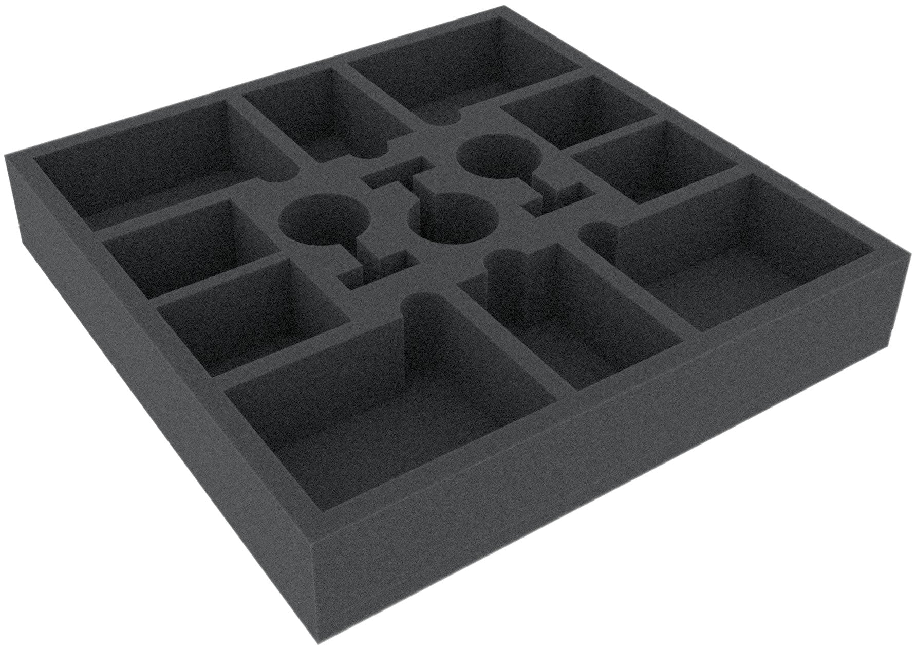 Le dimensioni di questo vassoio di schiuma per giochi da tavolo sono 285 mm x 285 mm x 50 mm.