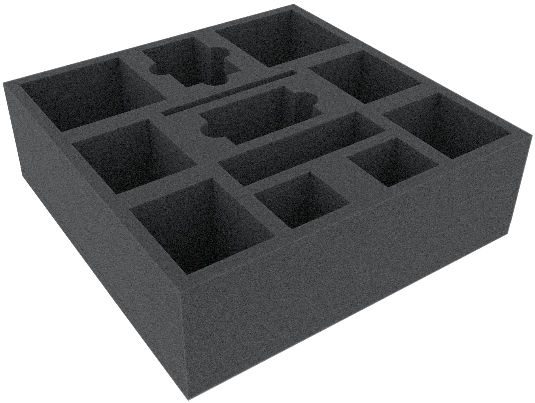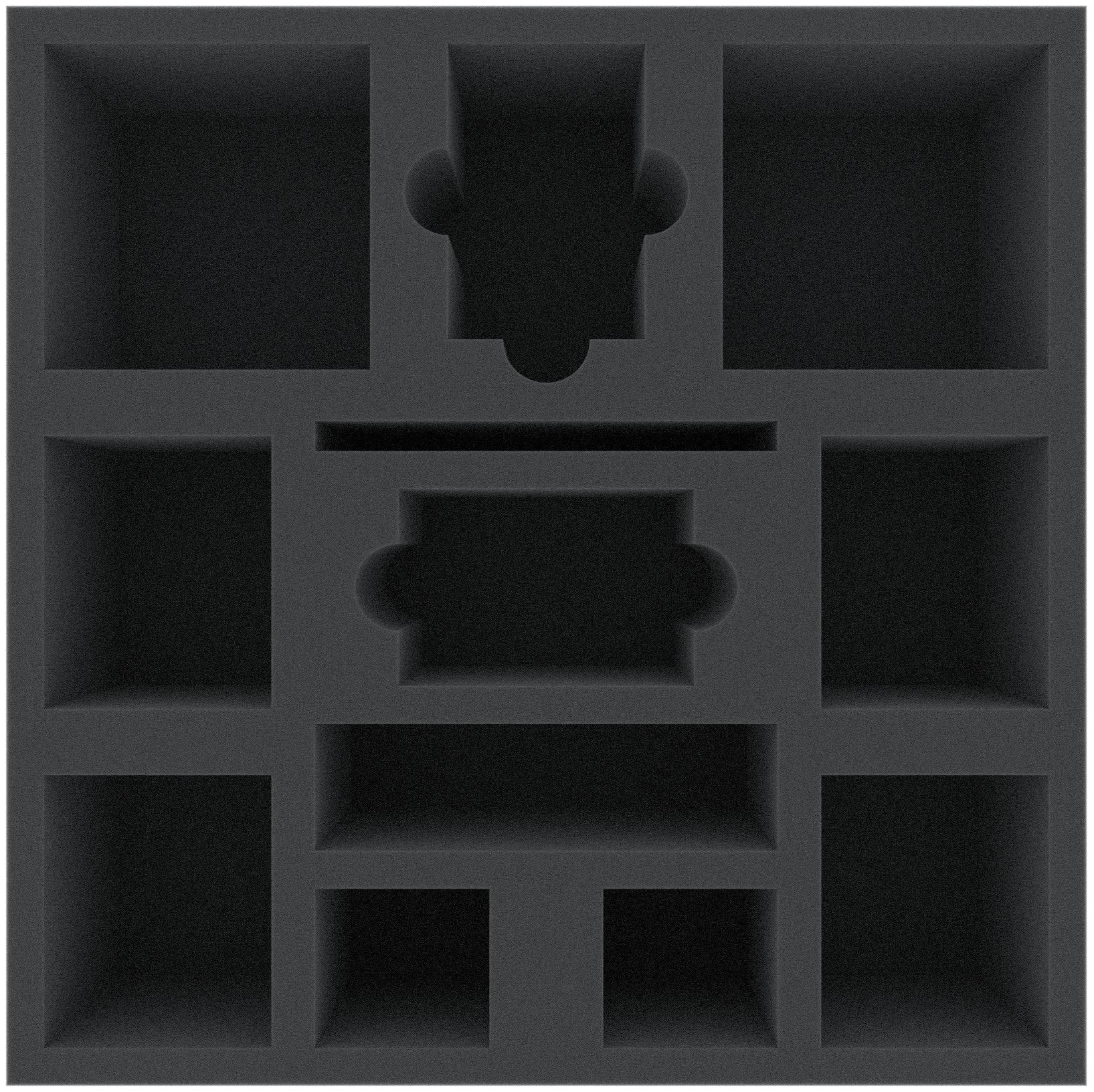 Vassoio in schiuma speciale per Mansions of Madness - 2a edizione. I 12 scomparti di diverse dimensioni sono adatti a tutti i materiali di gioco immaginabili come i grandi mostri, i gettoni o le carte in maniche.