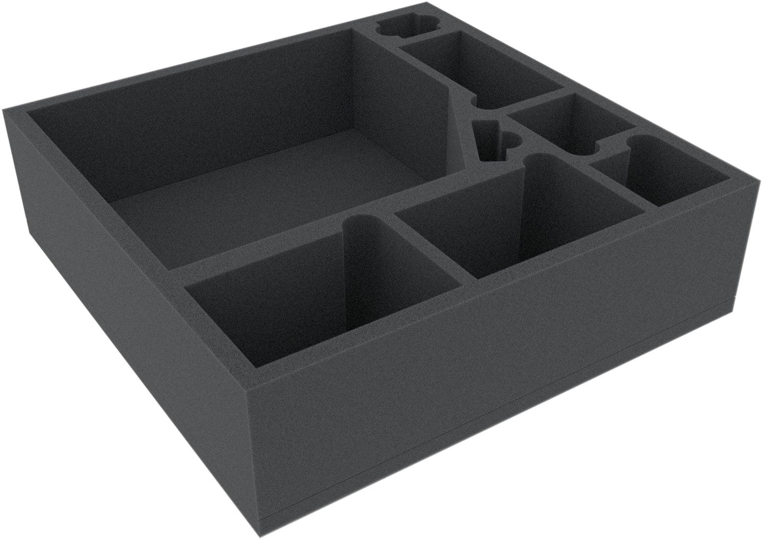 Il vassoio in schiuma è diviso in 1 grande scomparto per l'inserto in schiuma e 7 scomparti aggiuntivi per riporre i componenti del gioco.