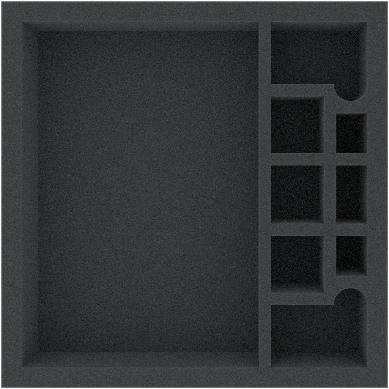 Questo vassoio di schiuma di 55 mm di altezza è suddiviso in 9 scomparti. È particolarmente adatto per riporre in modo sicuro miniature da tavolo e giochi da tavolo, nonché altri modelli fragili e piccole parti.