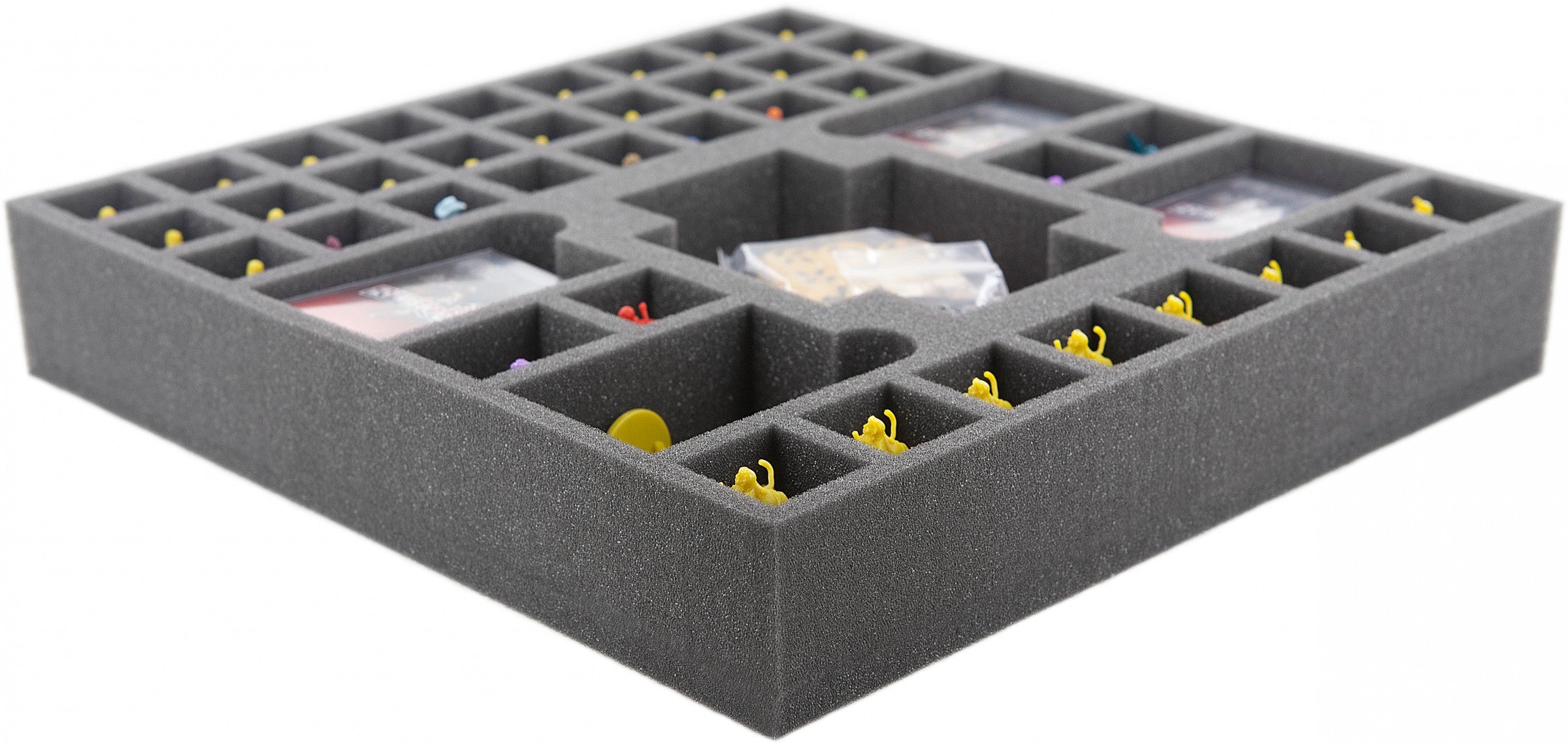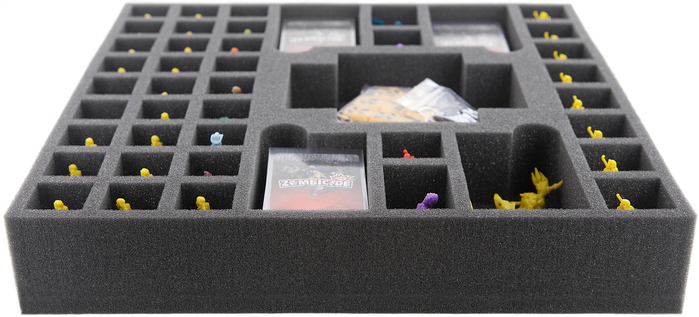Per Zombicide Seasaon 3 Rue Morgue ha creato un vassoio di schiuma. Il vassoio è stato progettato per contenere la roba della Stagione 3. Ci sono 44 scomparti sul vassoio di schiuma.
