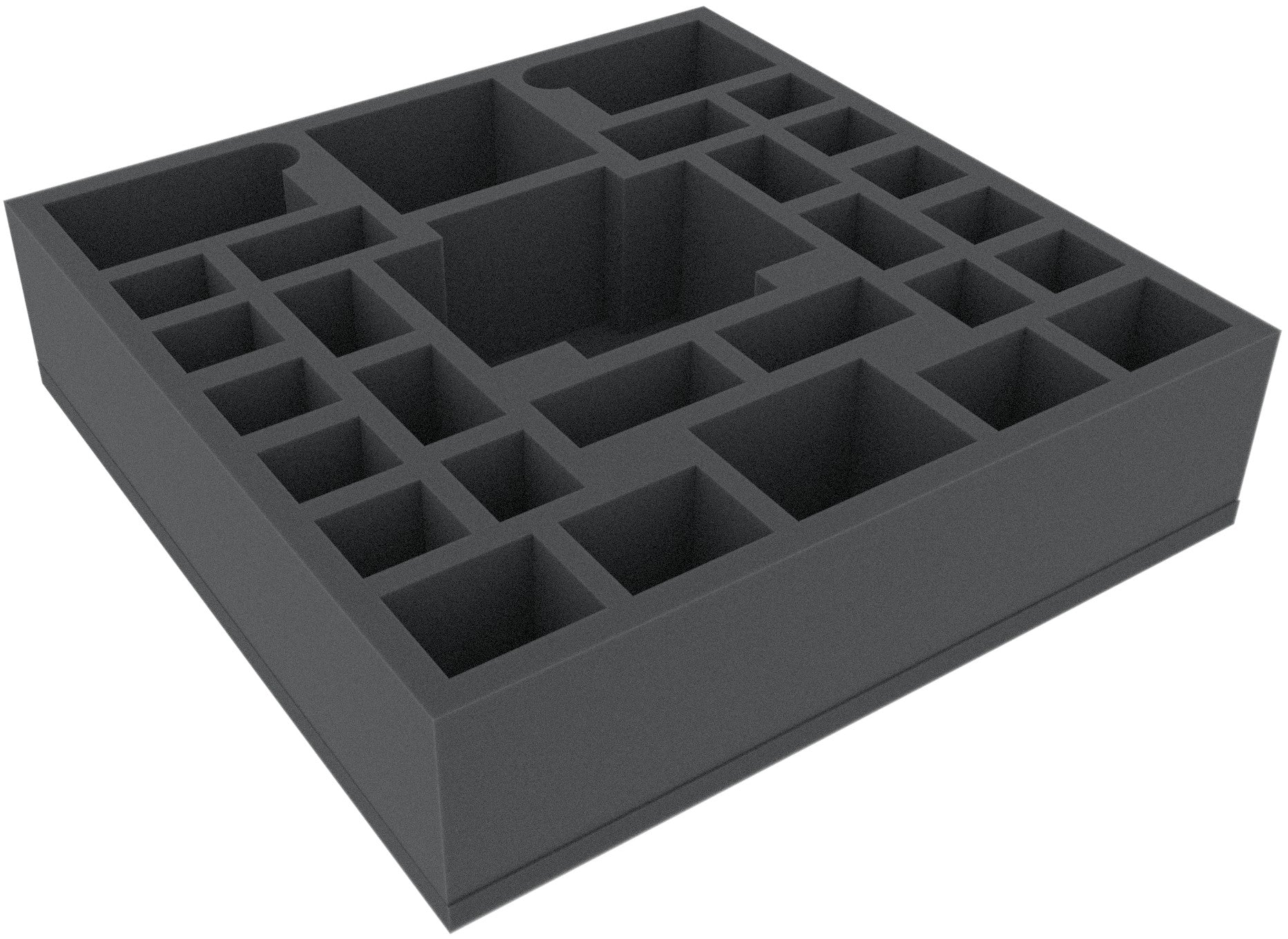 Questo vassoio in schiuma è suddiviso in 29 scomparti di diverse dimensioni. È particolarmente adatto come inserto per riporre in modo sicuro le miniature e il materiale di gioco nelle scatole da gioco da tavolo originali (ad es. della CMON, Corvus Belli).