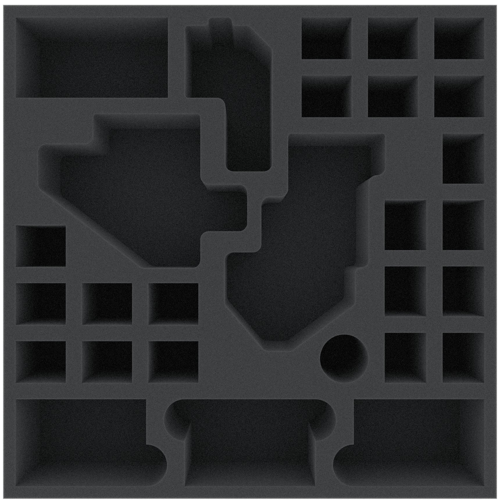 Questo vassoio in schiuma adatto per il retrofitting in molte scatole di giochi da tavolo originali. I 28 scomparti di diverse dimensioni sono adatti a tutti i materiali di gioco immaginabili. Così miniature, carte, pennarelli e dadi possono essere tenuti bene dentro.