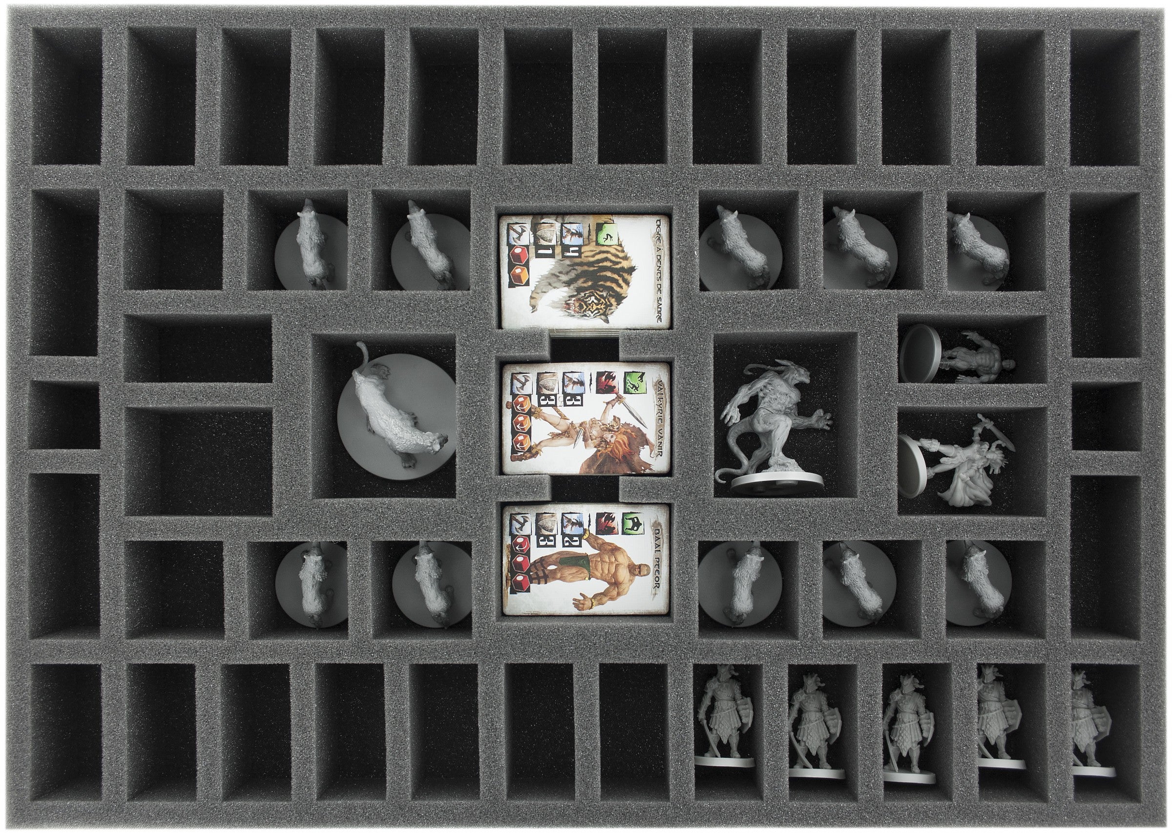 Specialmente vassoio in schiuma per gli ADD-ONS ESCLUSIVI Conan Kickstarter EXCLUSIVE. Il vassoio in schiuma con 49 ritagli può contenere le esclusive Kickstarter: Lupi giganti, Vanir Valkyrie!, Sabretooth-tiger, Baal Pteor, Draghi Neri e un demone della Terra. Inoltre c'è spazio per altre 29 miniature. Il vassoio in schiuma si inserisce perfettamente nella scatola originale del gioco da tavolo Conan e nella scatola delle porte allungate Conan.