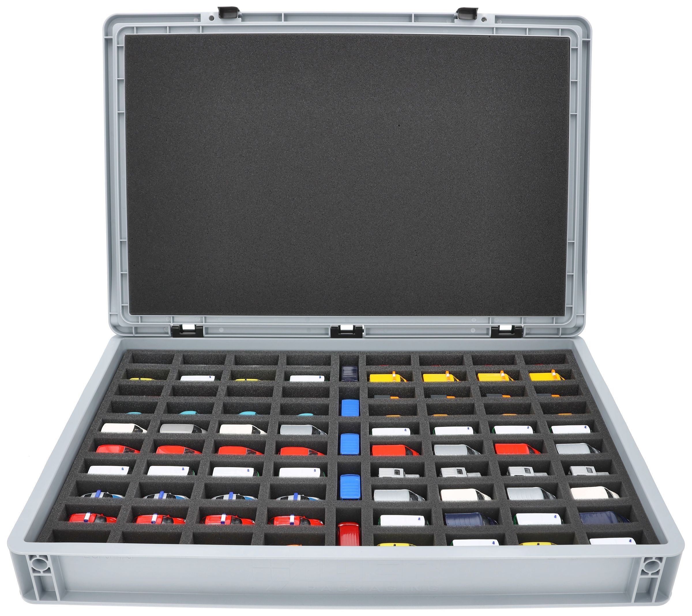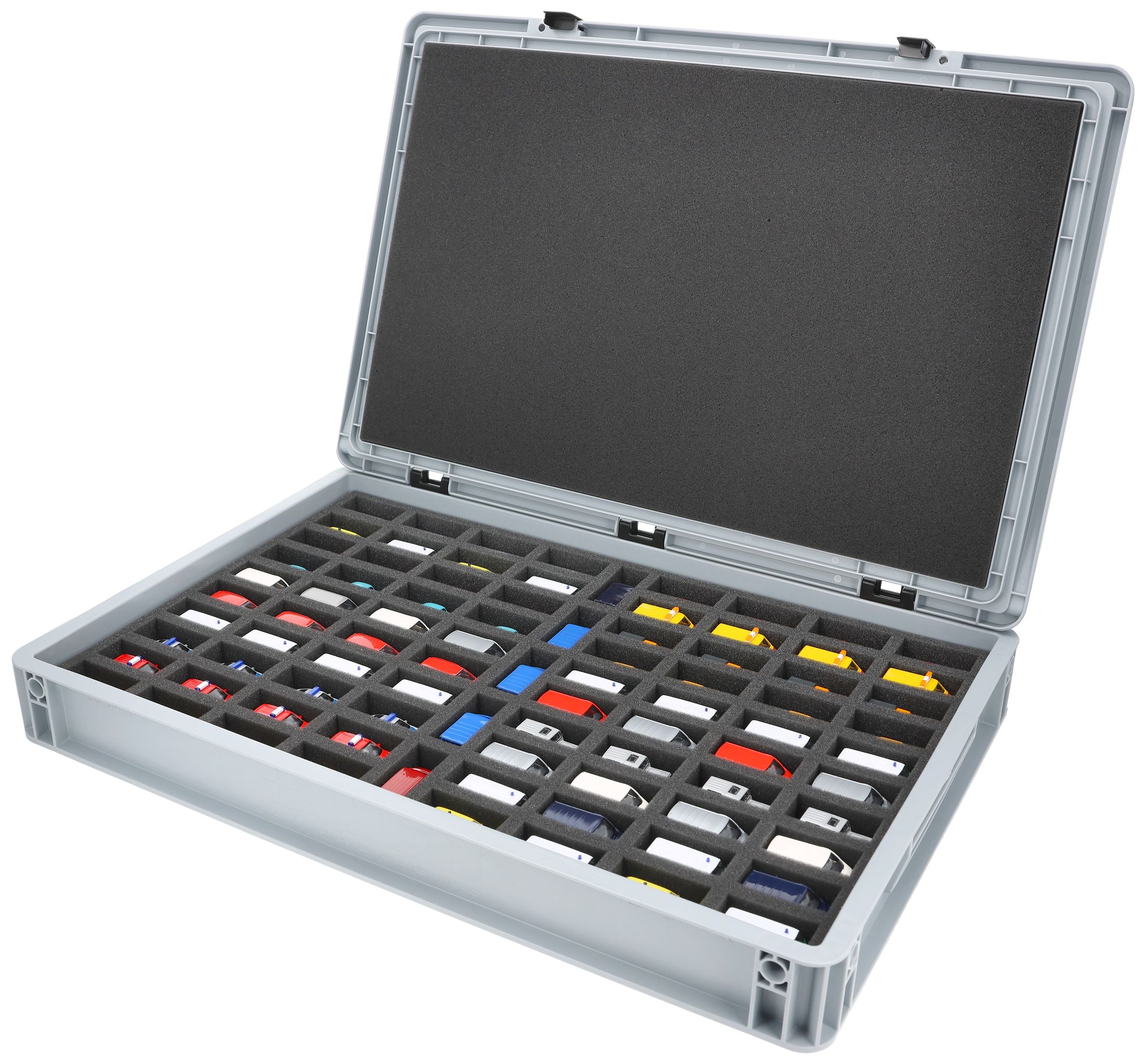 - 1 x Inserto in schiuma a grandezza naturale con 85 scomparti per automodelli 1:87 - JV035A001