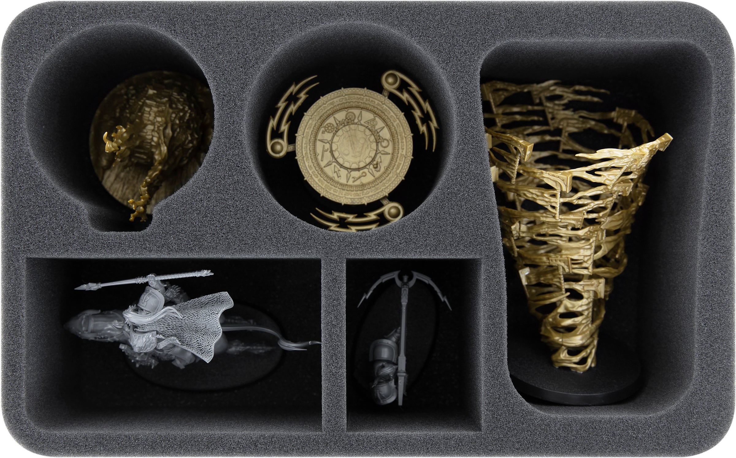 Anche l'incantesimo più potente può rompersi. Per evitare che ciò accada, questo vassoio di schiuma Feldherr ha scomparti a forma di miniatura per gli Incantesimi Infiniti del tuo esercito di Stormcast Eternals.