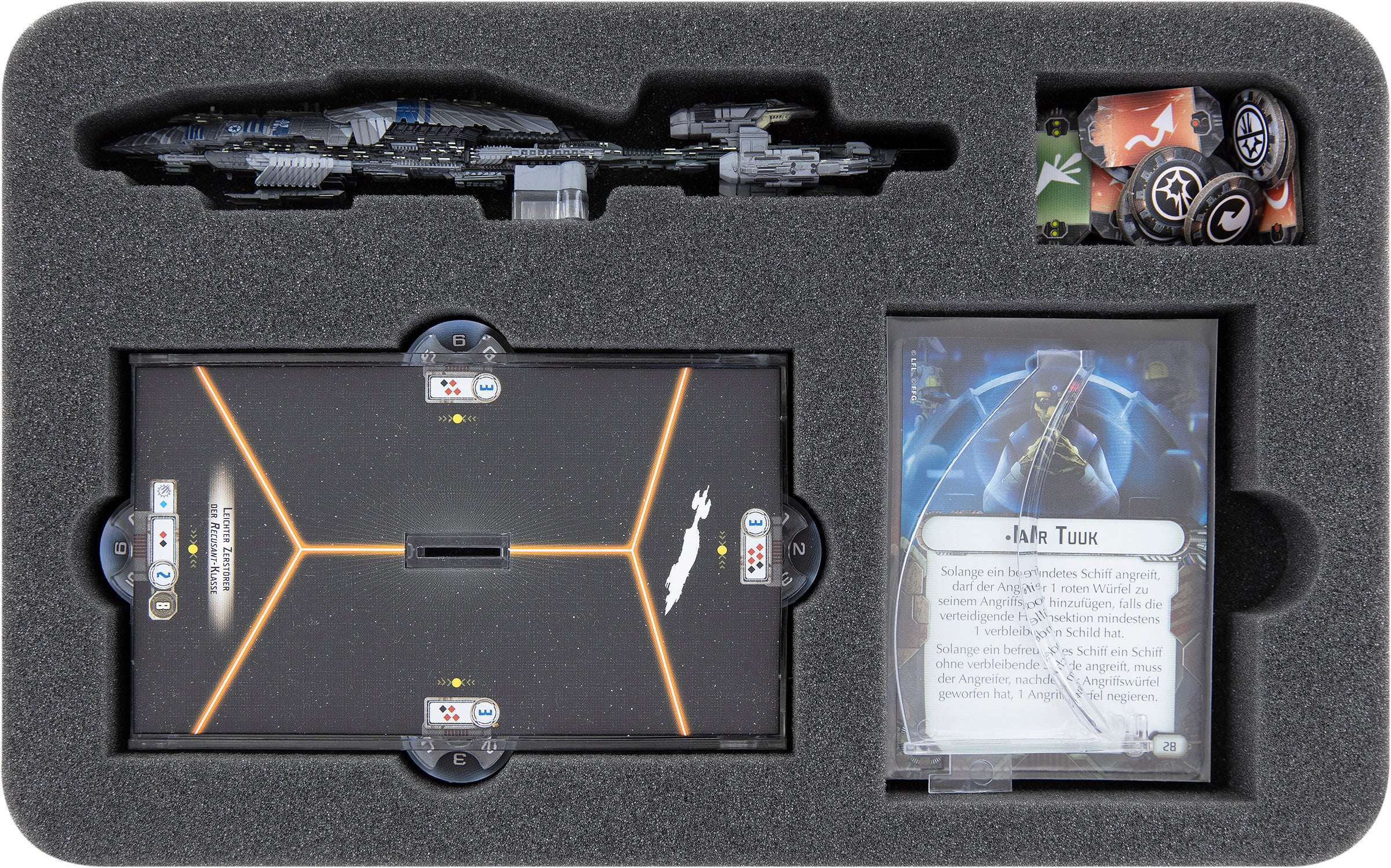 Puoi trasportare un singolo cacciatorpediniere di classe Recusant protetto in modo sicuro in questo vassoio di schiuma Feldherr personalizzato abbinato.