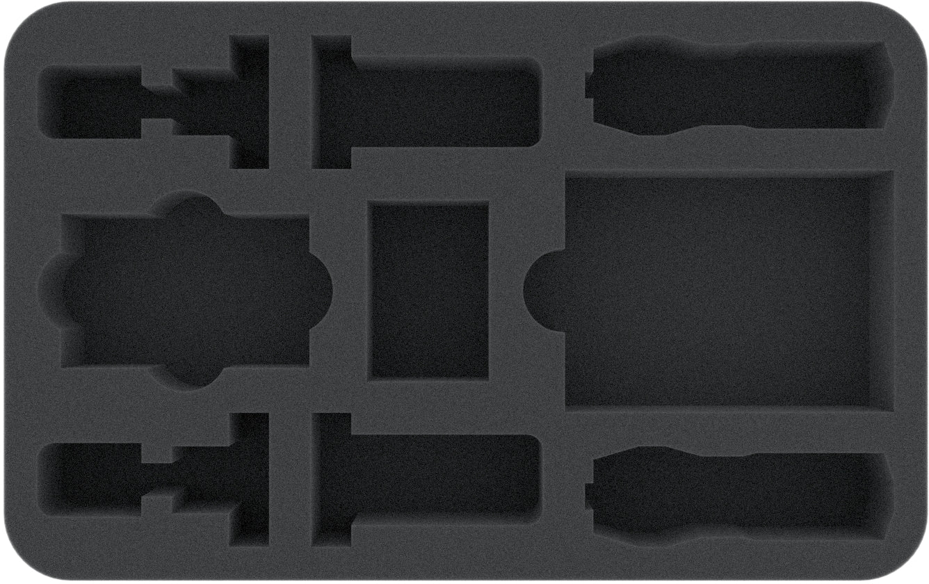Il vassoio di schiuma Half-Size con un totale di 9 scomparti protegge le tue miniature. Due scompartimenti a forma di miniatura per le Fregate assicurano un'aderenza perfetta e sicura. Circondato dalla schiuma morbida, i bordi vulnerabili e altri dettagli fini della miniatura sono risparmiati dai danni. I colori sono anche al sicuro da graffi e abrasioni della vernice.