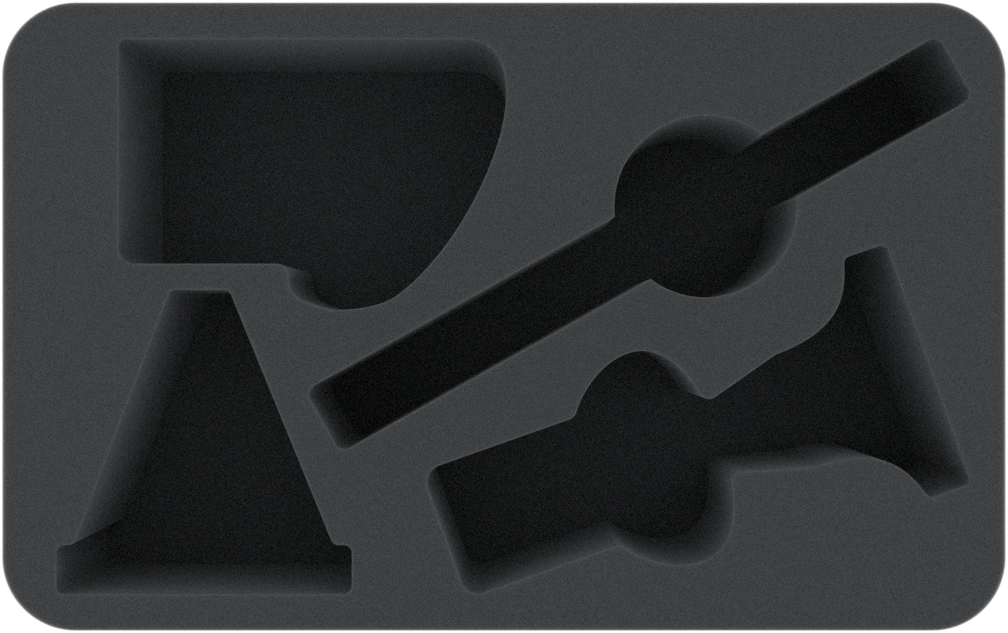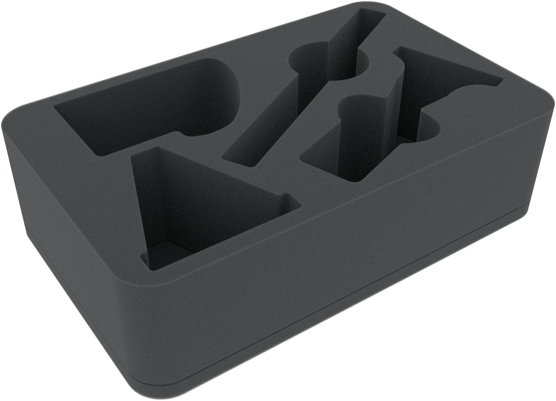 Il vassoio di schiuma Half-Size misura: 275 mm x 172 mm x 75 mm di altezza totale (65 mm di altezza utile + 10 mm di base in schiuma)