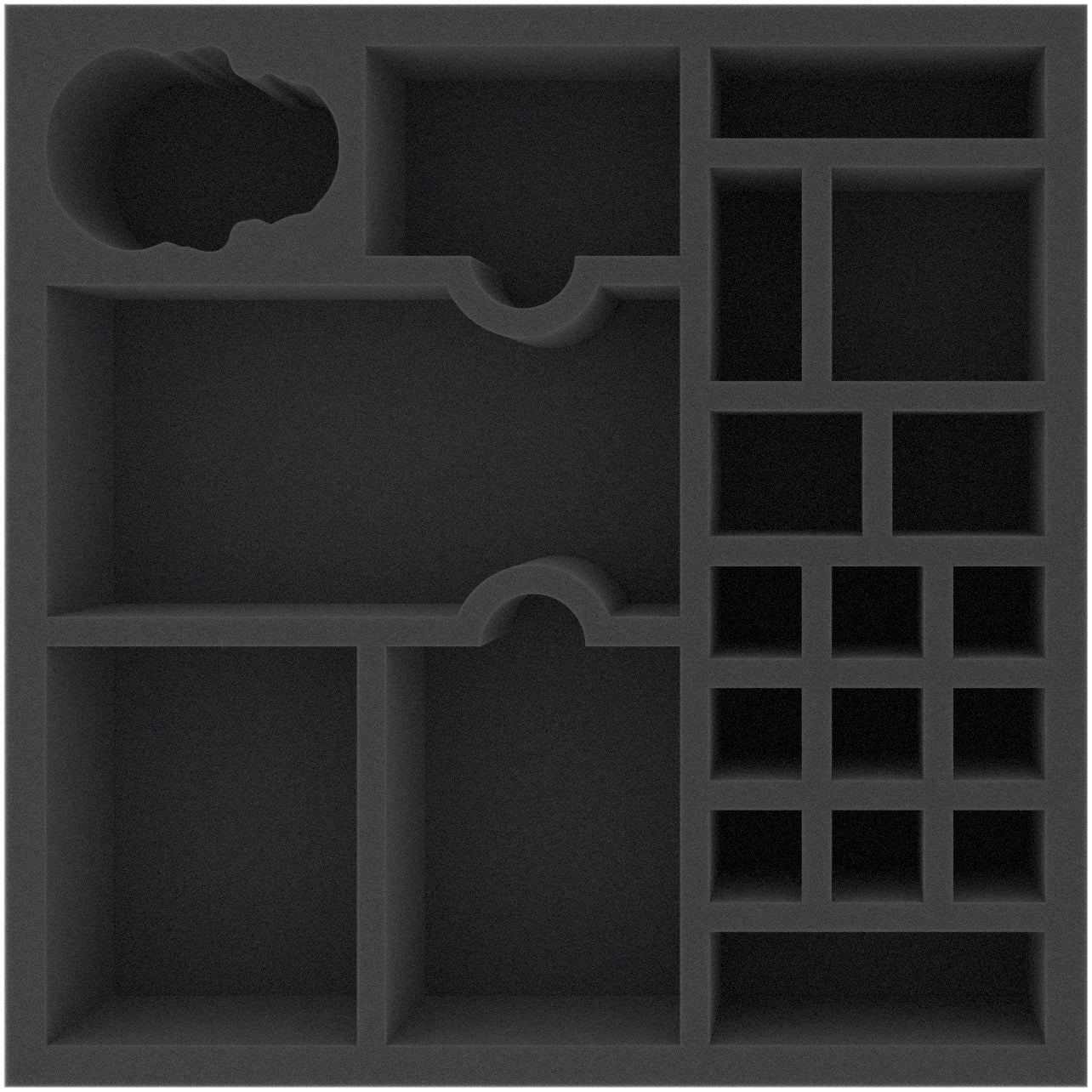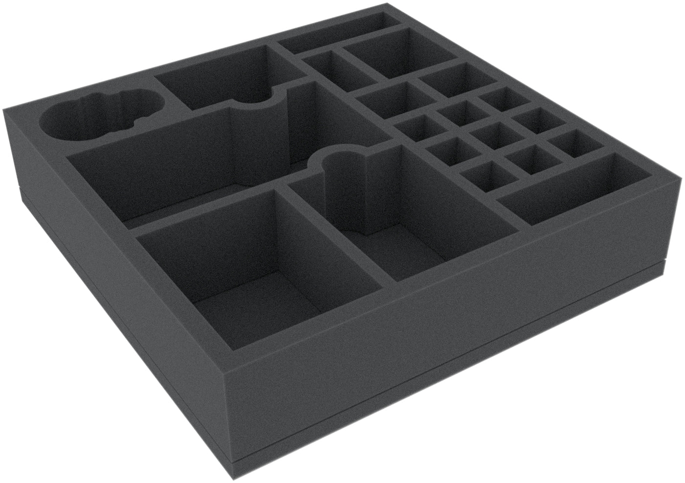 Questo Vassoio per schuma alto 60 mm è suddiviso in 20 scomparti. È particolarmente adatto per conservare in modo sicuro i giochi da tavolo e da tavolo miniature, nonché altri modelli fragili e piccole parti.