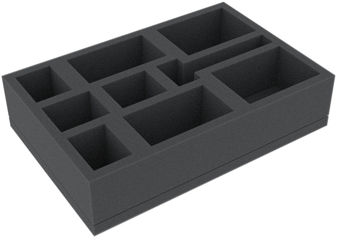 Questo Vassoio per schuma alto 50 mm è suddiviso in 9 scomparti. È particolarmente adatto per conservare in modo sicuro miniature da tavolo e giochi da tavolo, nonché altri modelli fragili e piccole parti.
