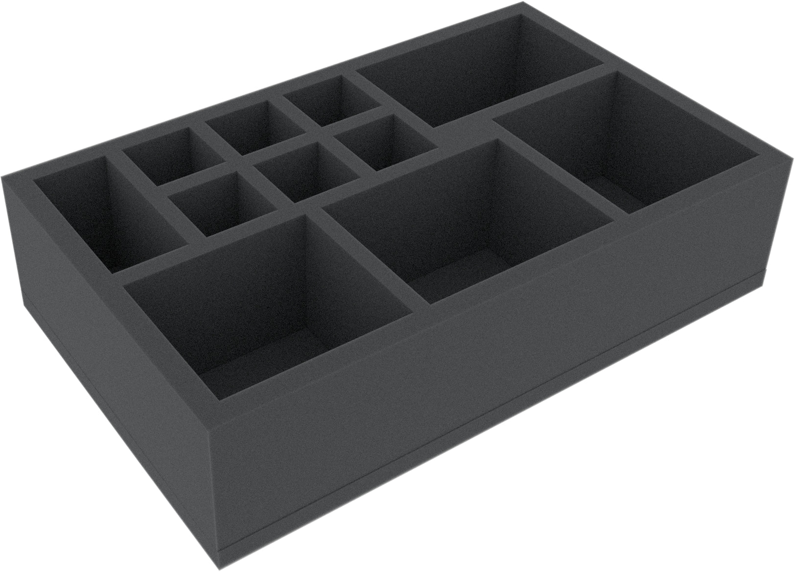 Questo Vassoio per schuma alto 70 mm è suddiviso in 11 scomparti. È particolarmente adatto per conservare in modo sicuro miniature da tavolo e giochi da tavolo, nonché altri modelli fragili e piccole parti.