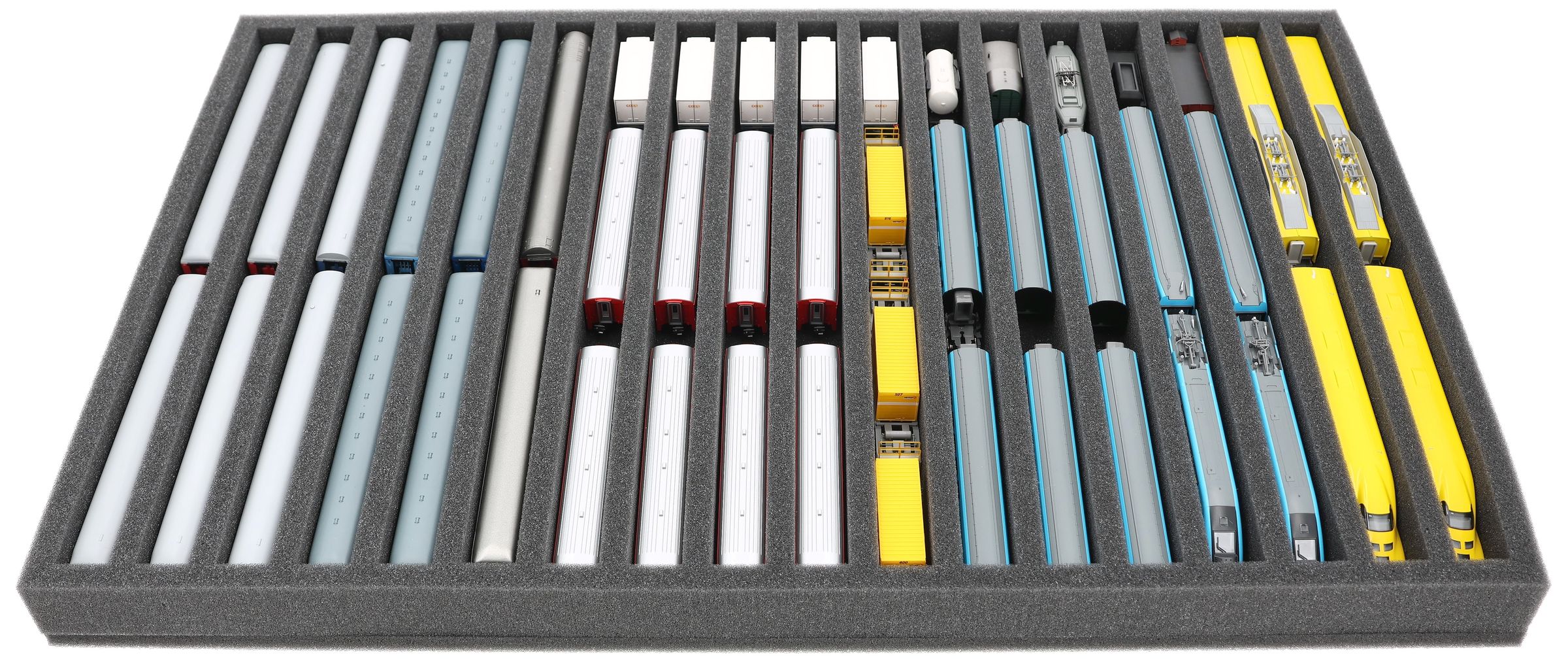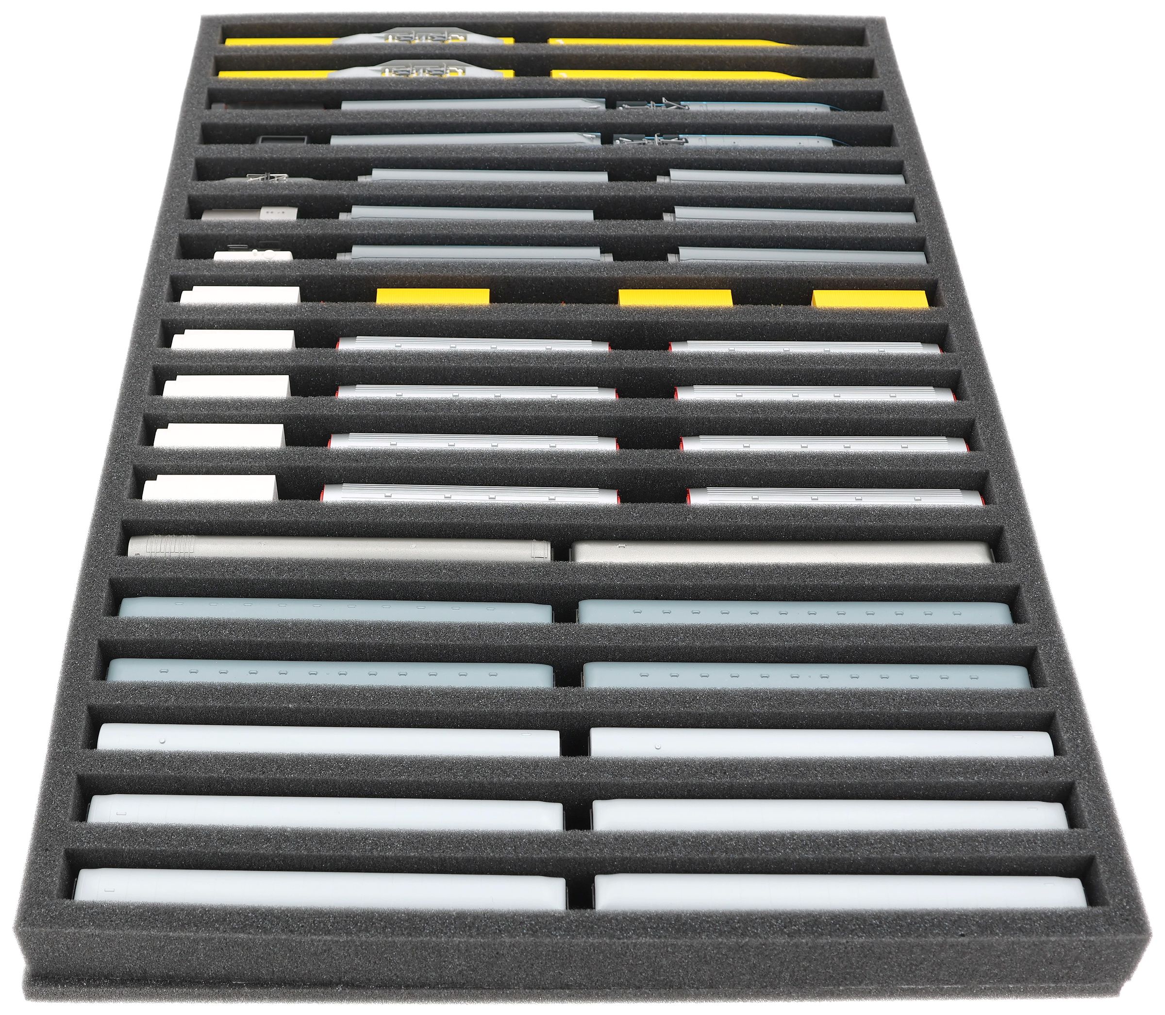 JV040A002 Inserto in schiuma Feldherr per modellismo ferroviario - scala N - 18 scomparti - per stoccaggio in verticale
