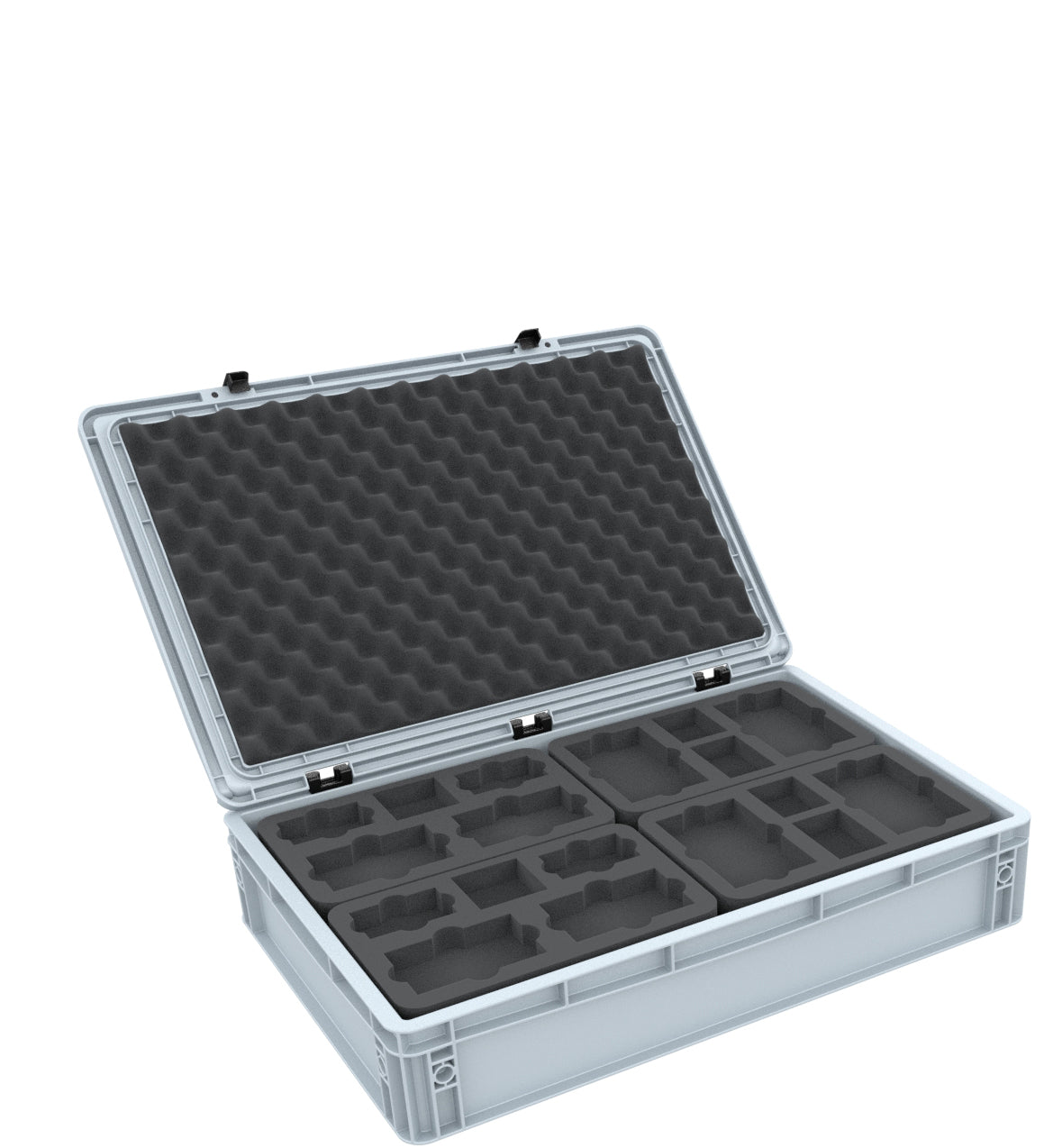 La confezione viene completata con il topper in schiuma convoluta abbinato. Grazie alla pellicola autoadesiva sul retro, è possibile incollarla all'interno del coperchio incernierato. In questo modo si garantisce che tutto sia imballato in modo sicuro in schiuma tutt'intorno.