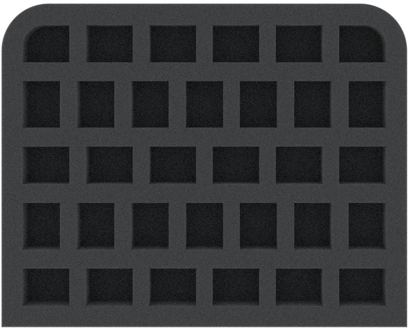 Questo vassoio in schiuma alto 50 mm è suddiviso in 32 scomparti. È particolarmente adatto per conservare in modo sicuro le miniature dei giochi da tavolo e di società, nonché altri modelli fragili e piccole parti.