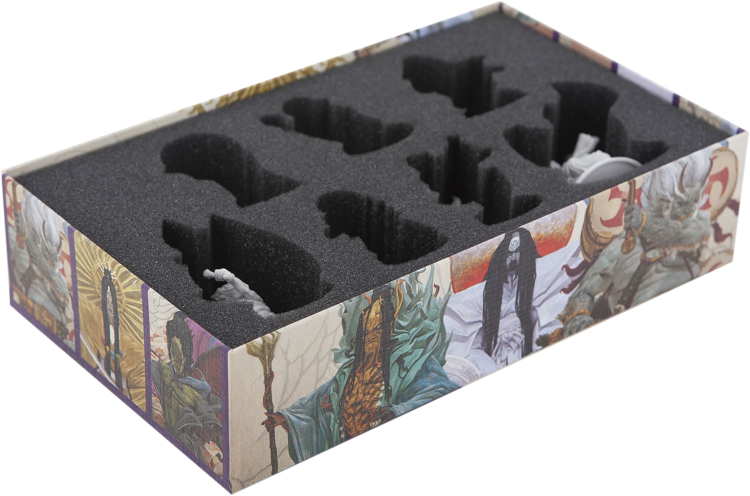 Ogni miniatura ha la sua forma individuale nella schiuma. Gli scomparti sono stati progettati appositamente per le miniature Kami Unbound. Il vassoio in schiuma si inserisce perfettamente nella scatola