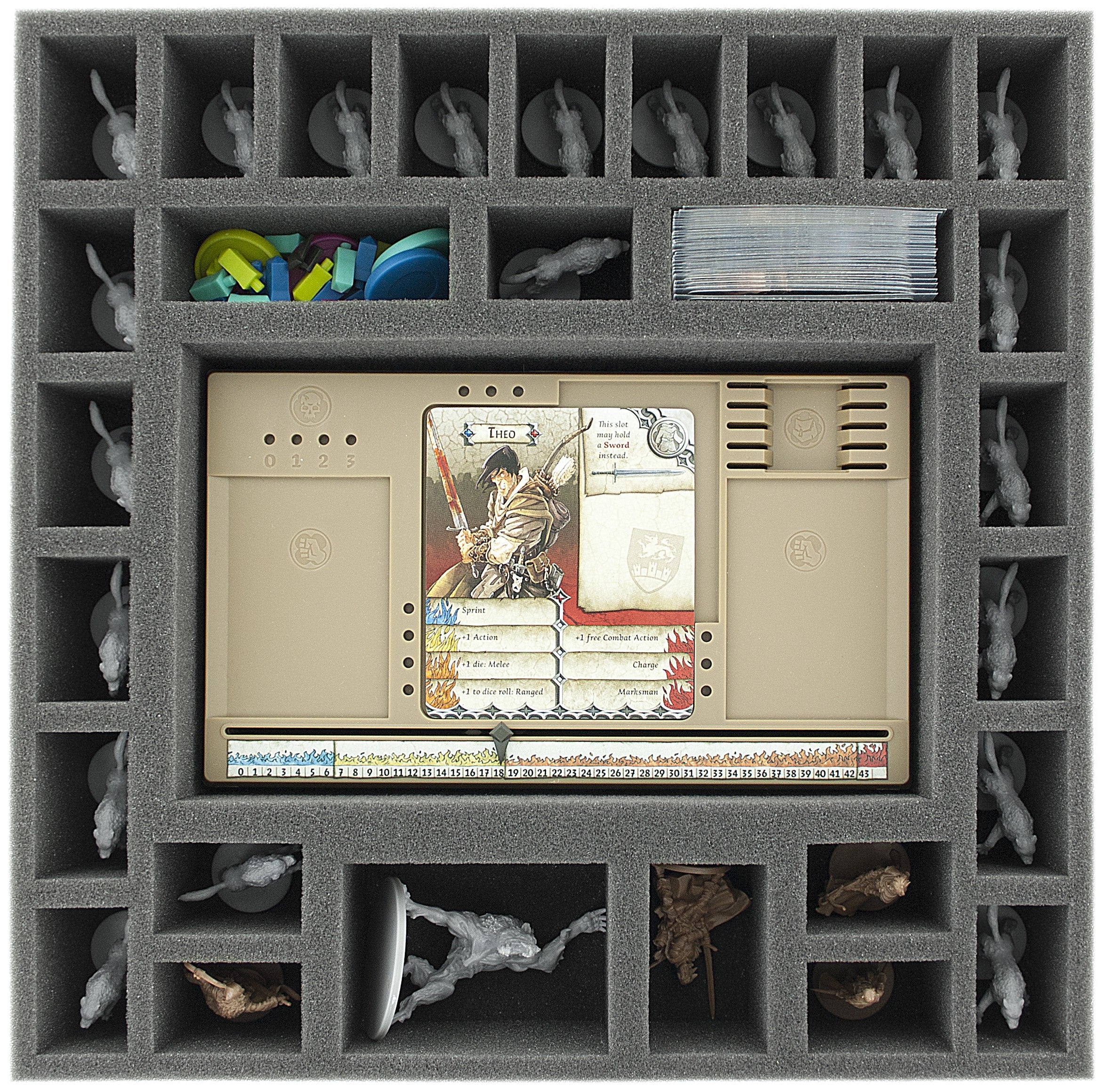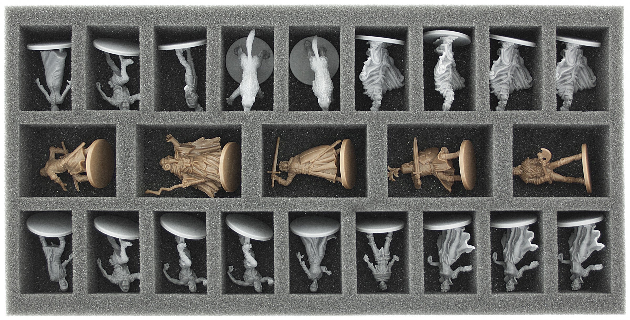 • 1 vassoio in schiuma da 55 mm per Zombicide Black Plague Wulfsburg con 29 scomparti più inserto in schiuma per 15 scomparti aggiuntivi (cod. art. AG055ZC18)