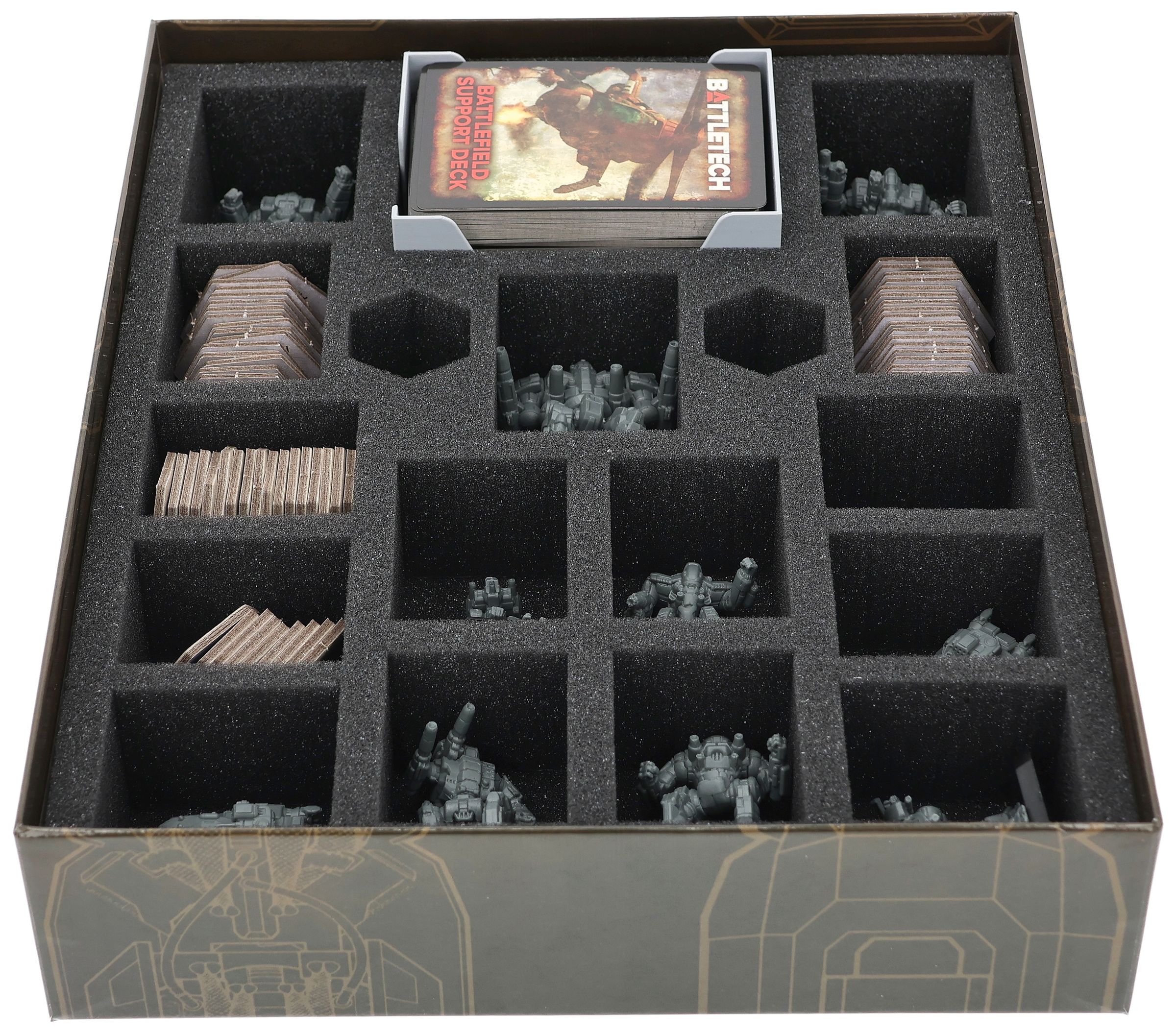 - Inserto in schiuma progettato su misura per la scatola originale del gioco da tavolo Battletech: Limited Edition Mercenaries Box Set (dimensioni dell'inserto: circa 285 mm x 230 mm x 60 mm).