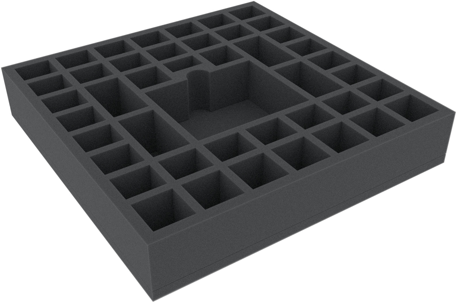 Questo vassoio in schiuma è suddiviso in 44 scomparti di diverse dimensioni. È particolarmente adatto per la conservazione sicura delle miniature di vari giochi da tavolo. Può anche essere utilizzato per ordinare accessori come gettoni, carte e dadi.