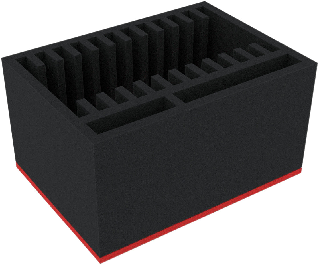 Grazie al materiale espanso estremamente stabile, i dispositivi sono perfettamente protetti dagli urti meccanici. Allo stesso tempo, il materiale è così leggero che l'inserto non ha quasi alcun peso proprio. La disposizione degli inserti consente di ordinare tutto in modo chiaro.