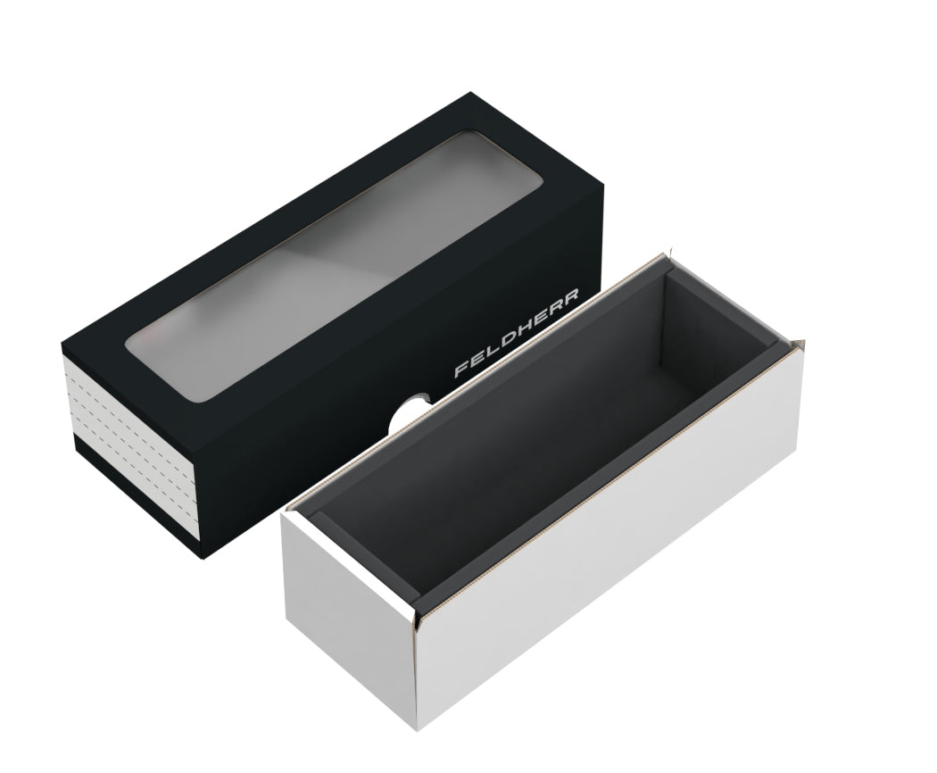 La scatola e il coperchio sono consegnati piatti. Semplici istruzioni per piegare la scatola possono essere trovate sul nostro sito web.