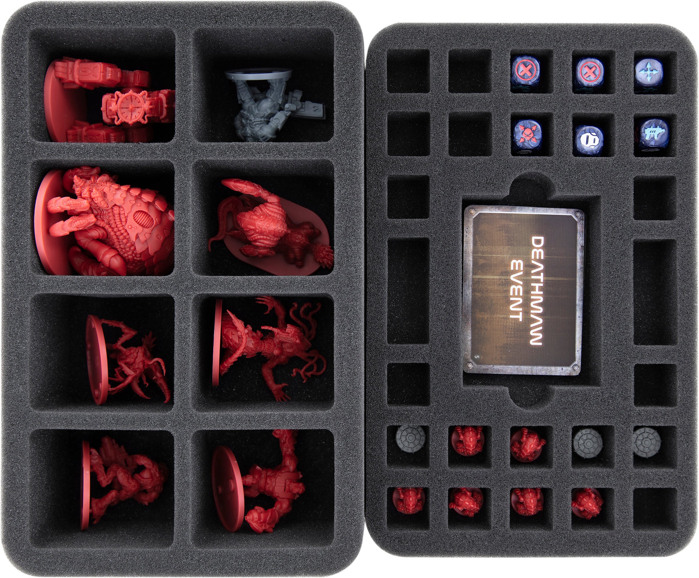 - 2 vassoi in schiuma Half-Size + inserto 3D per materiale di gioco e miniature (HSMEQO50BO + 60432)