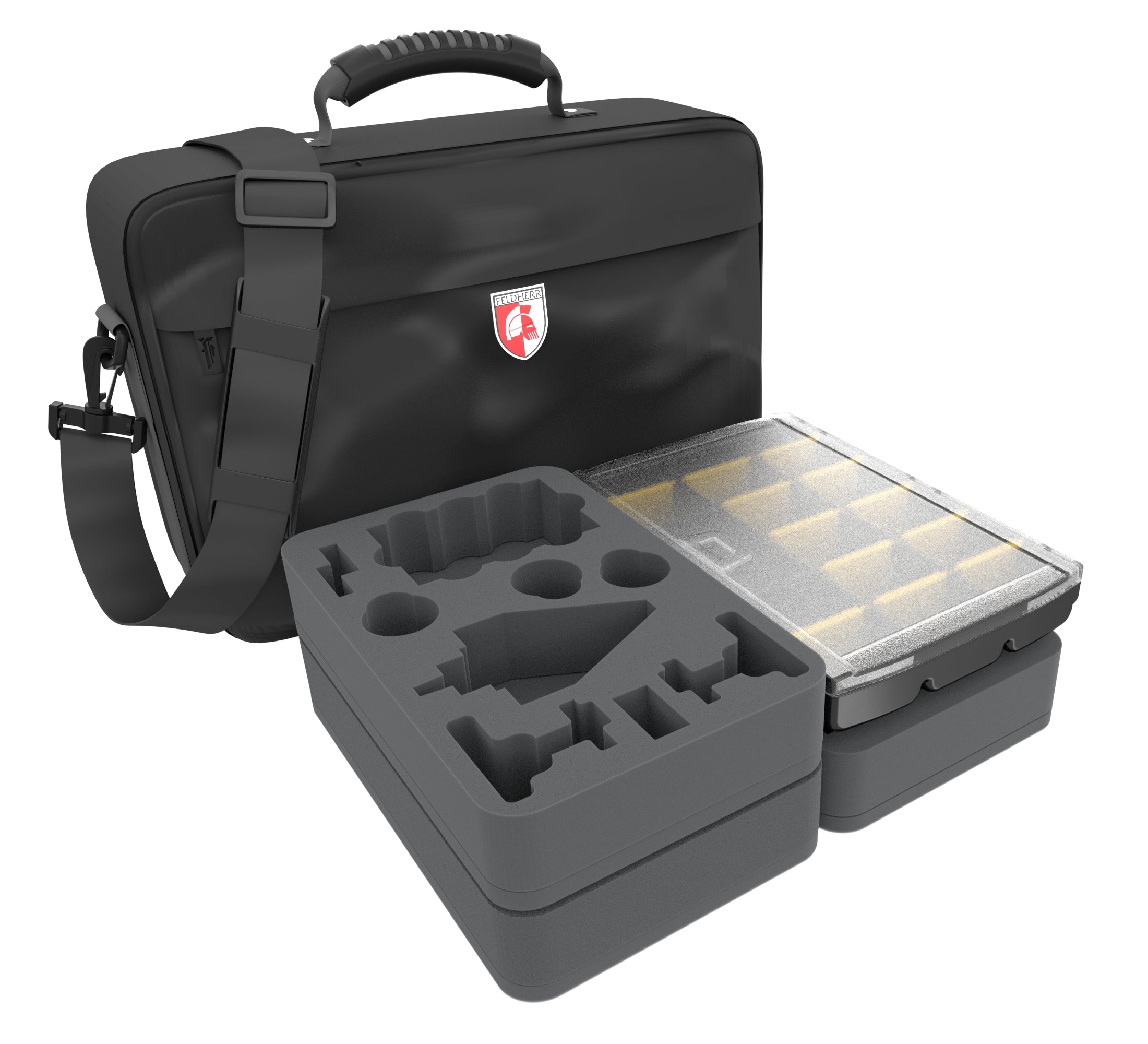 Con questa borsa Feldherr MEDIUM, riempita con un contenitore a scomparti e vassoi di schiuma personalizzati progettati appositamente per la Galactic Republic Fleet Starter e il Fighter Squadrons Expansion Pack, sei ben equipaggiato per combattere i Separatisti.