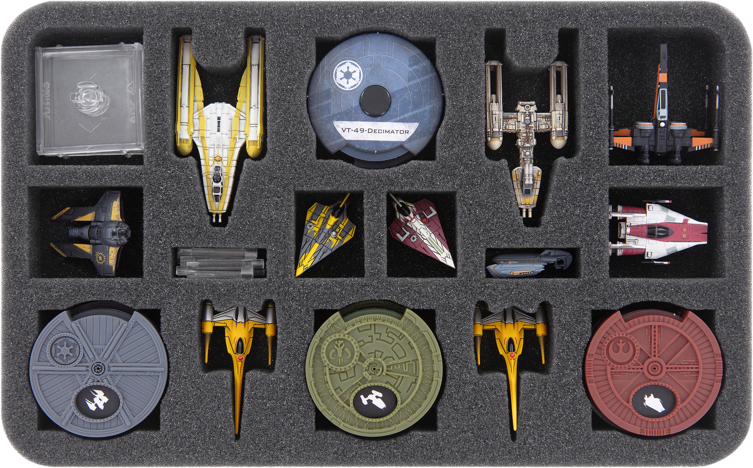 Con il BTL-B Y-Wing e il Naboo Royal N-1 Starfighter la vostra flotta della Repubblica Galattica è ampliata da due navi esclusive. Per essere sicuri che arrivino pronti a volare e illeso al tavolo da gioco, Feldherr ha questo Magnetic Box giallo con l'inserto in schiuma su misura per voi. La schiuma di alta qualità protegge in modo affidabile i vostri modelli: i dettagli fragili in miniatura rimangono intatti, le superfici sensibili rimangono prive di graffi e abrasioni.
