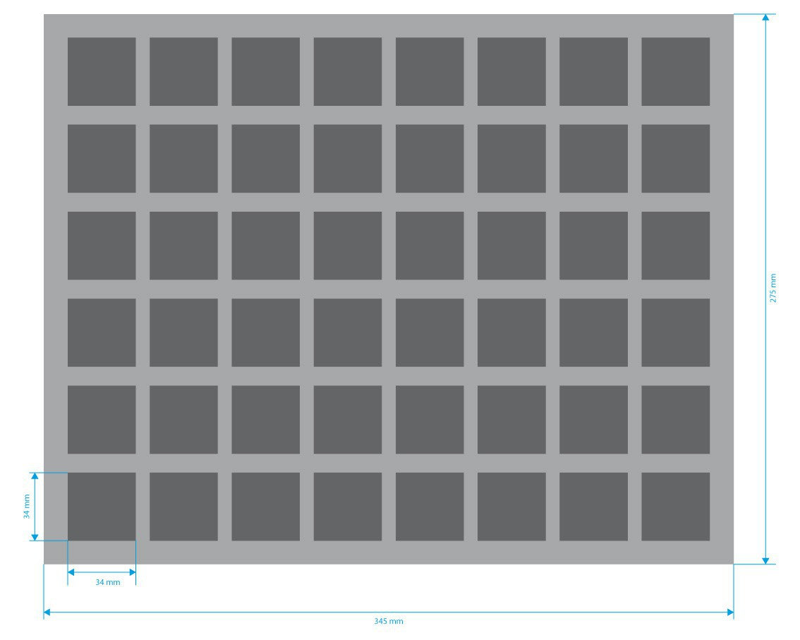 - 48 fessure con le dimensioni 34 x 34 x 34 x 40 mm di altezza