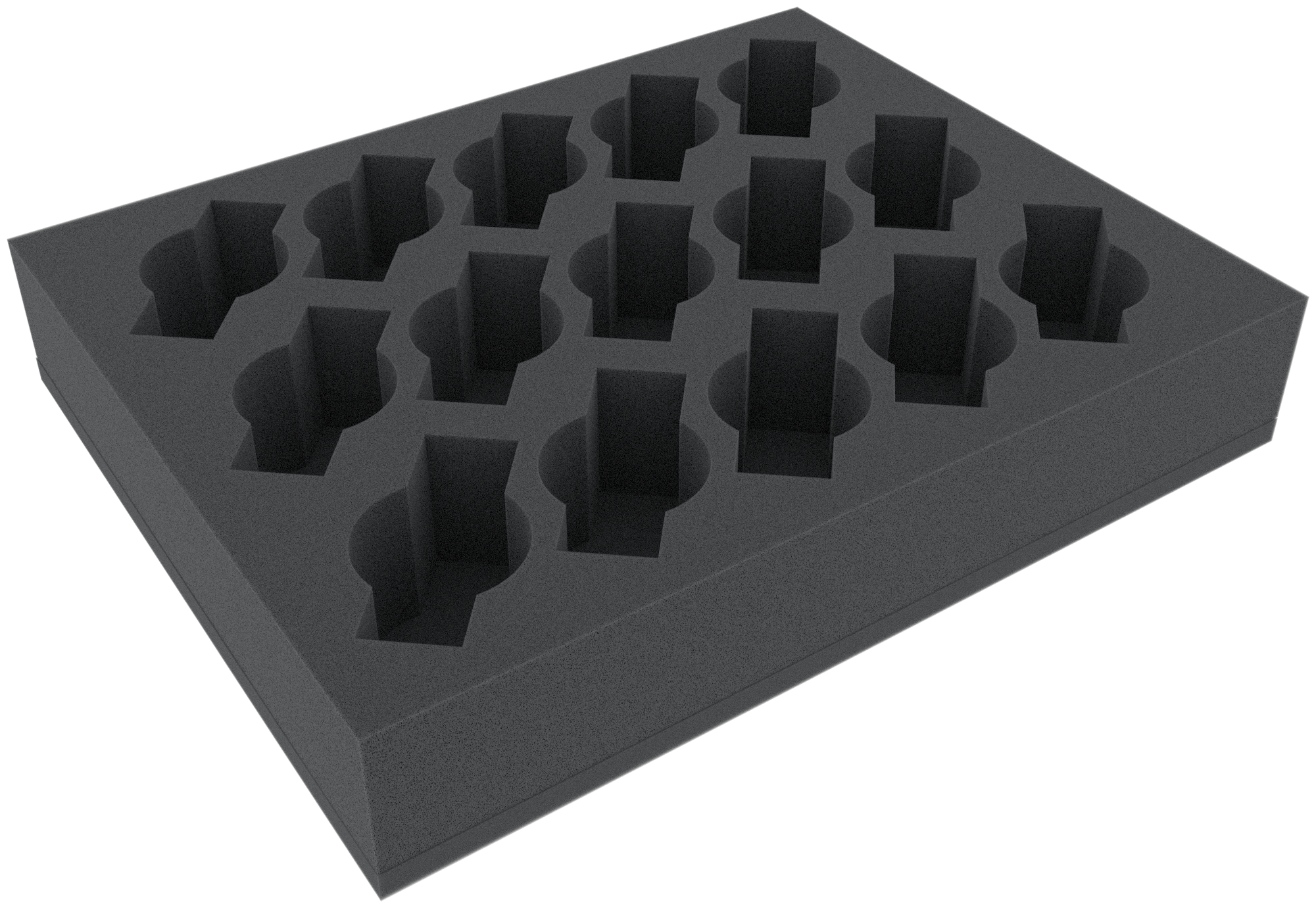 Il vassoio in schiuma Full-Size ha le dimensioni: 345 mm x 275 mm x 50 mm di altezza totale (40 mm di altezza utile + 10 mm di base in schiuma).