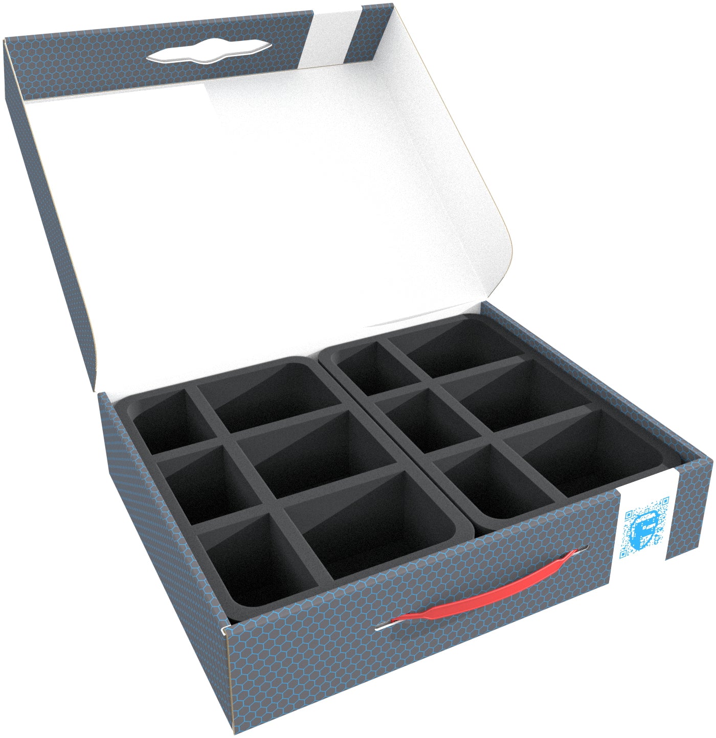 L'FSLB075 Storage Box è rivestito di cartone ondulato, che lo rende non solo piacevolmente leggero, ma anche particolarmente resistente agli strappi e stabile. Potete riporre il vostro esercito in modo sicuro e trasportare il vostro miniature senza polvere e senza fatica grazie alla pratica maniglia di trasporto in plastica.