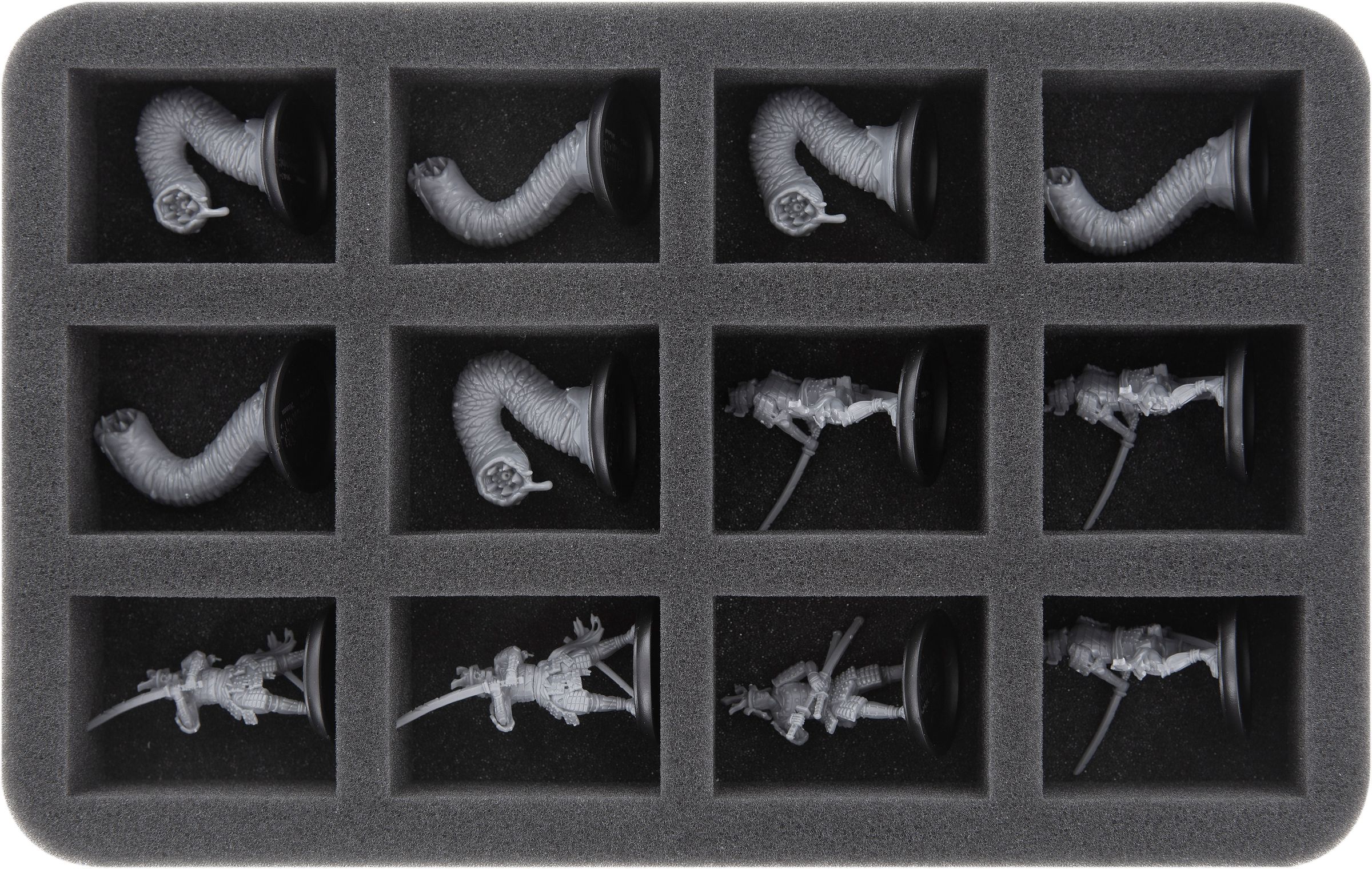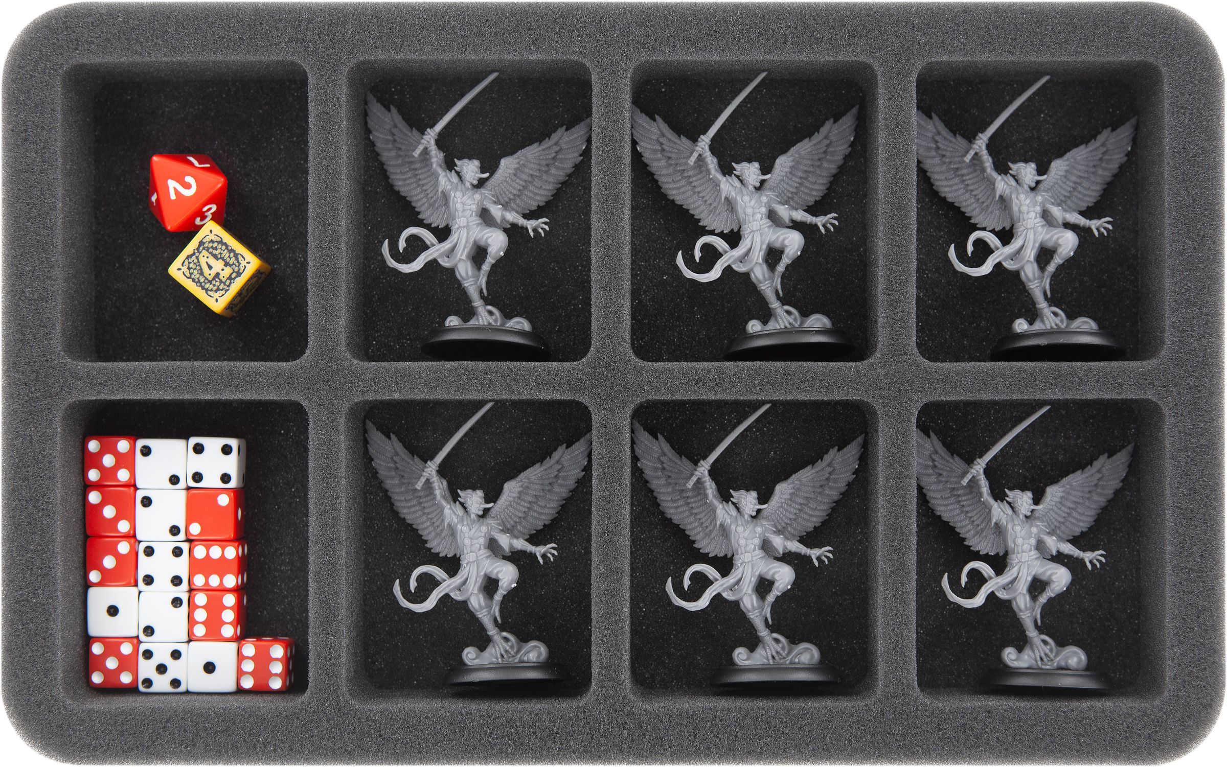 • 1 vassoio di schiuma con 8 scomparti per miniature di medie dimensioni (HS040BF02BO)