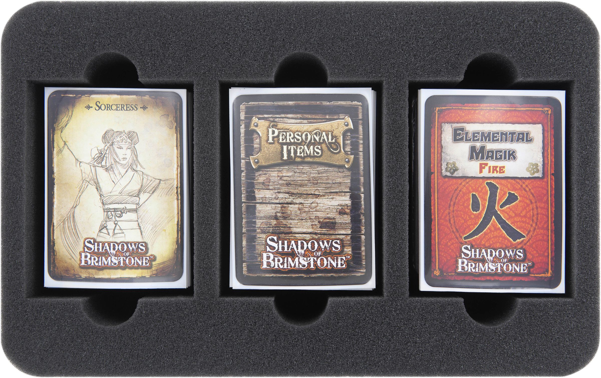 Vorremmo presentarvi la nostra scatola portaoggetti Full-Size con vassoi di schiuma abbinati per il gioco da tavolo "Fortezza Proibita" della serie "Shadows of Brimstone".