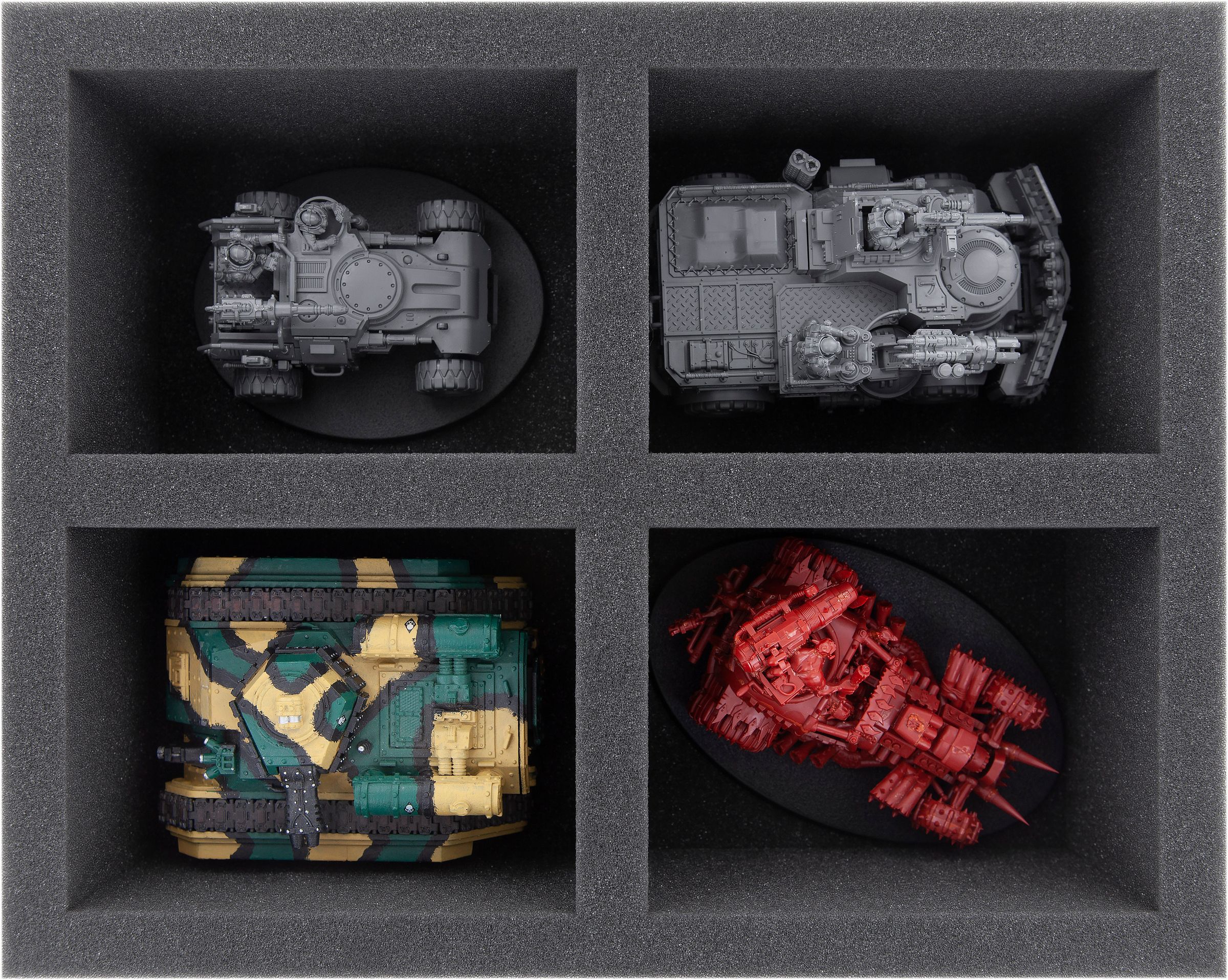L'inserto Full-Size a 4 scomparti consente di riporre in tutta sicurezza fino a 4 modelli più grandi. Gli scomparti sono ideali per i veicoli Genestealer Cults come il Ridgerunner e il Goliath Rockgrinder.