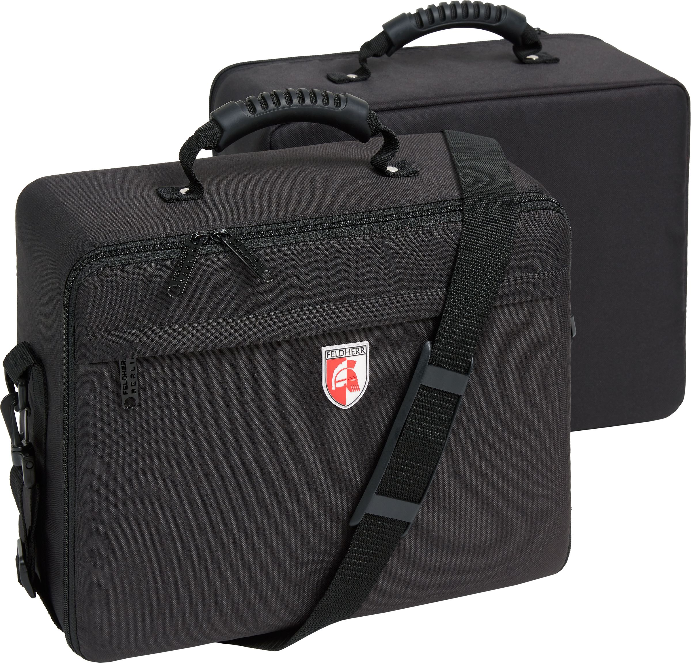 La borsa nera Feldherr MAXI è realizzata in tessuto particolarmente resistente. Pannelli laterali imbottiti e una base rinforzata garantiscono inoltre una protezione ottimale del contenuto dagli influssi esterni anche in caso di trasporto in auto o in treno. Può anche essere bloccato e collegato con un lucchetto opzionale. Accanto all'ampio scomparto principale, la borsa ha una tasca più piccola con cerniera sul davanti. Qui, ad esempio, è possibile conservare fogli di gioco, libri e materiale di scrittura.