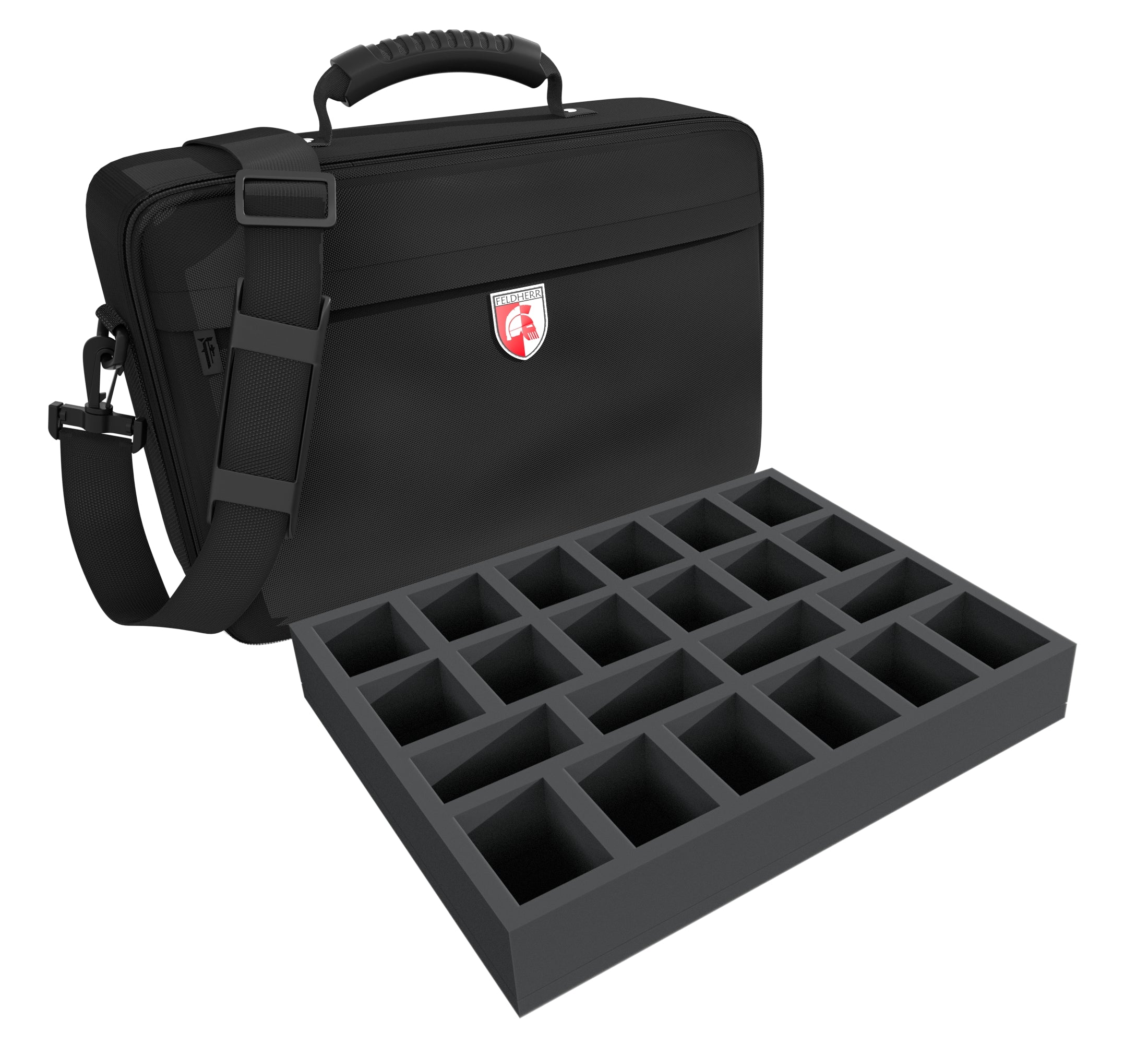 Per assicurarti che non succeda nulla al tuo esercito sulla strada per la prossima missione, qui ottieni la borsa MEDIUM abbinata che include vassoi di schiuma Feldherr personalizzati per proteggere le tue miniature.