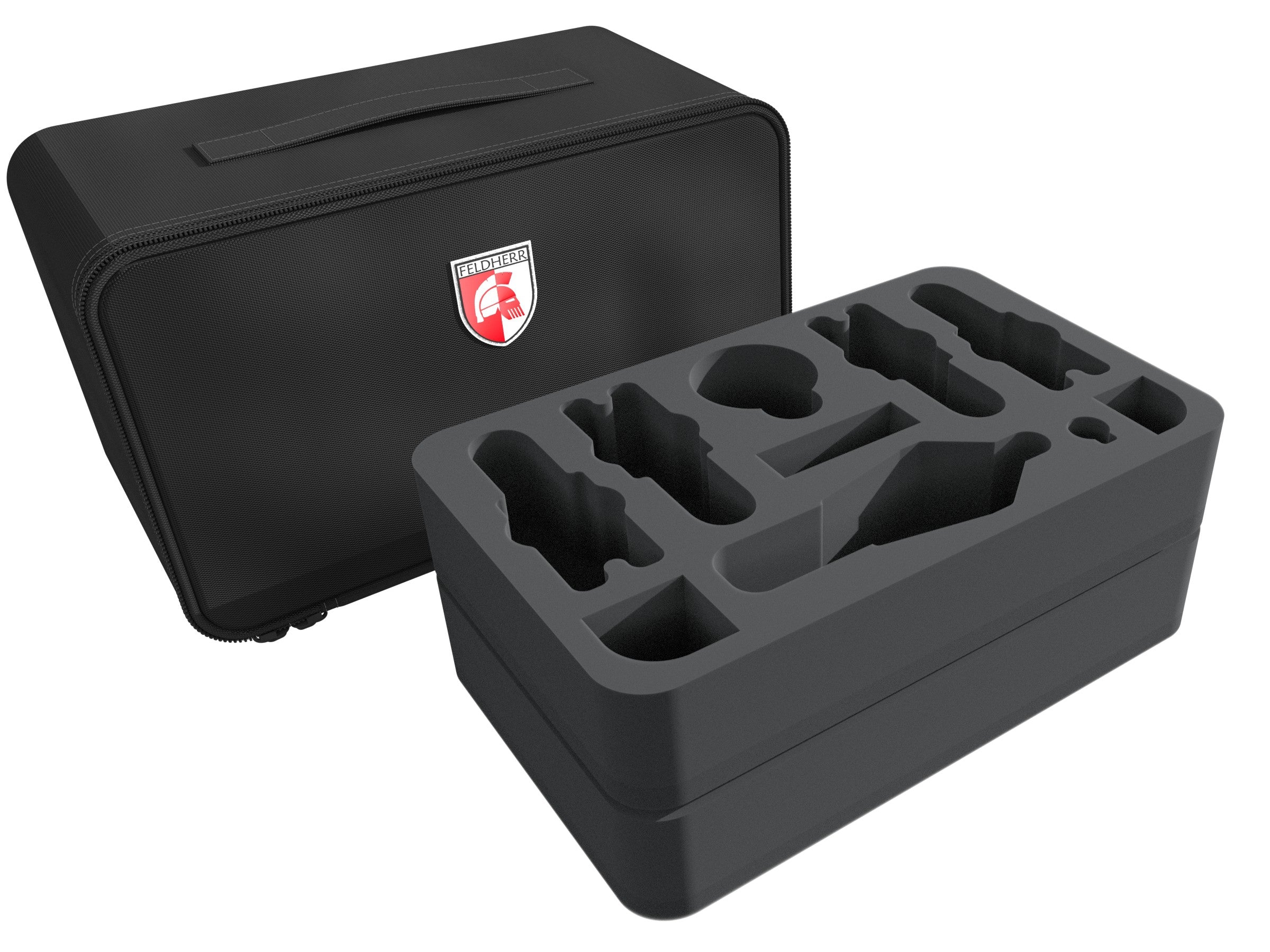 Feldherr MINI PLUS Case per Feldherr MINI PLUS Case per Dropfleet Commander: UCM. La borsa è adatta a 2 corazzate, 8 incrociatori e 11 fregate. Inoltre, sono incluse piccole capsule di plastica per i chiodini di danneggiamento.