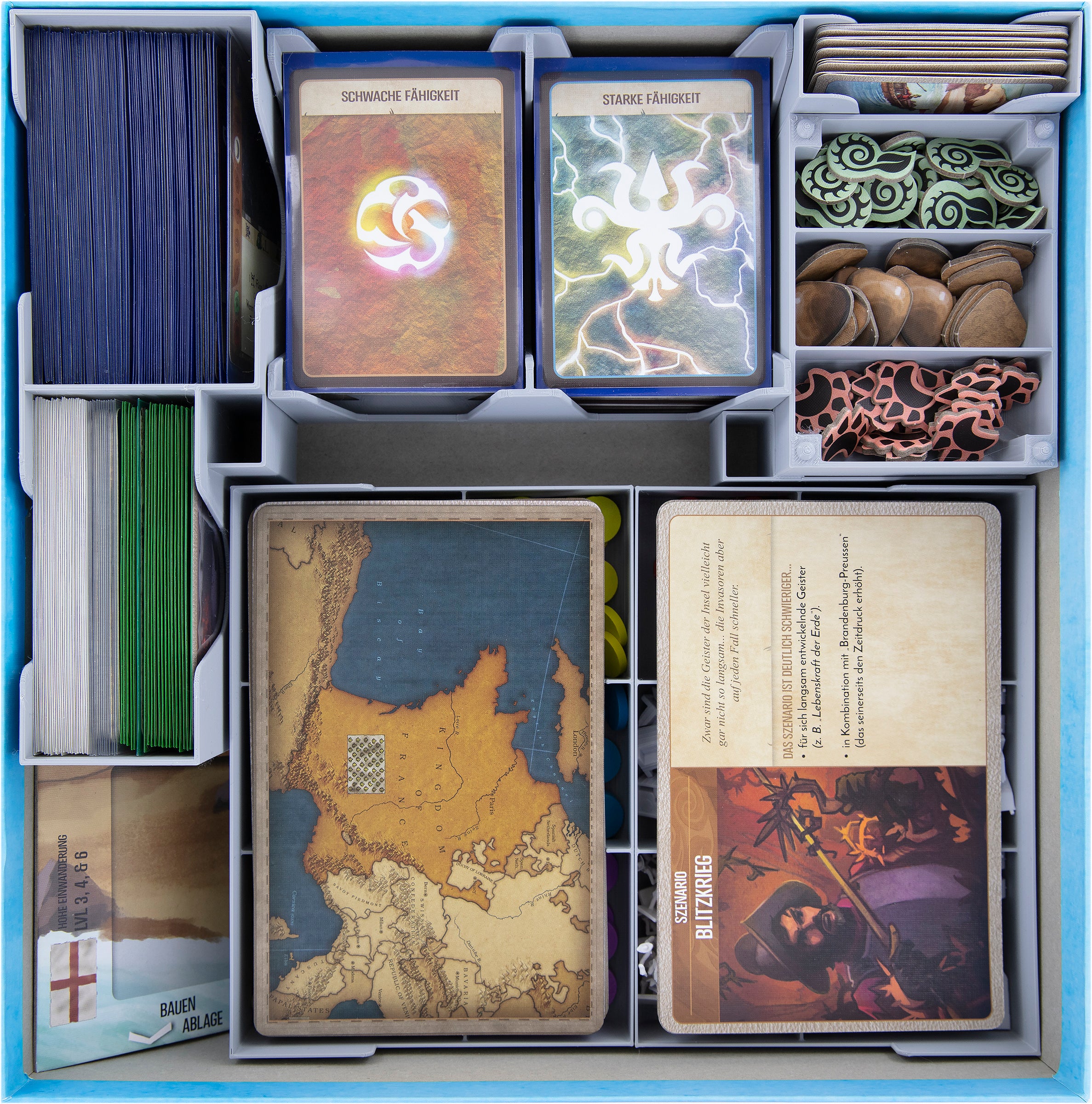 Abbiamo creato questo Organizzatore Feldherr per te, per tenere il tuo materiale di gioco ben organizzato. Mentre noi ci occupiamo dell'organizzazione nella scatola e sul tavolo di gioco, tu puoi cacciare gli invasori dalla tua isola.
