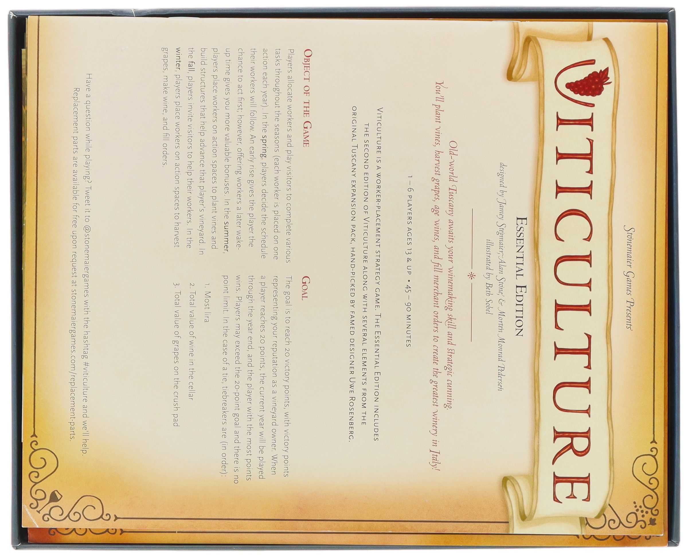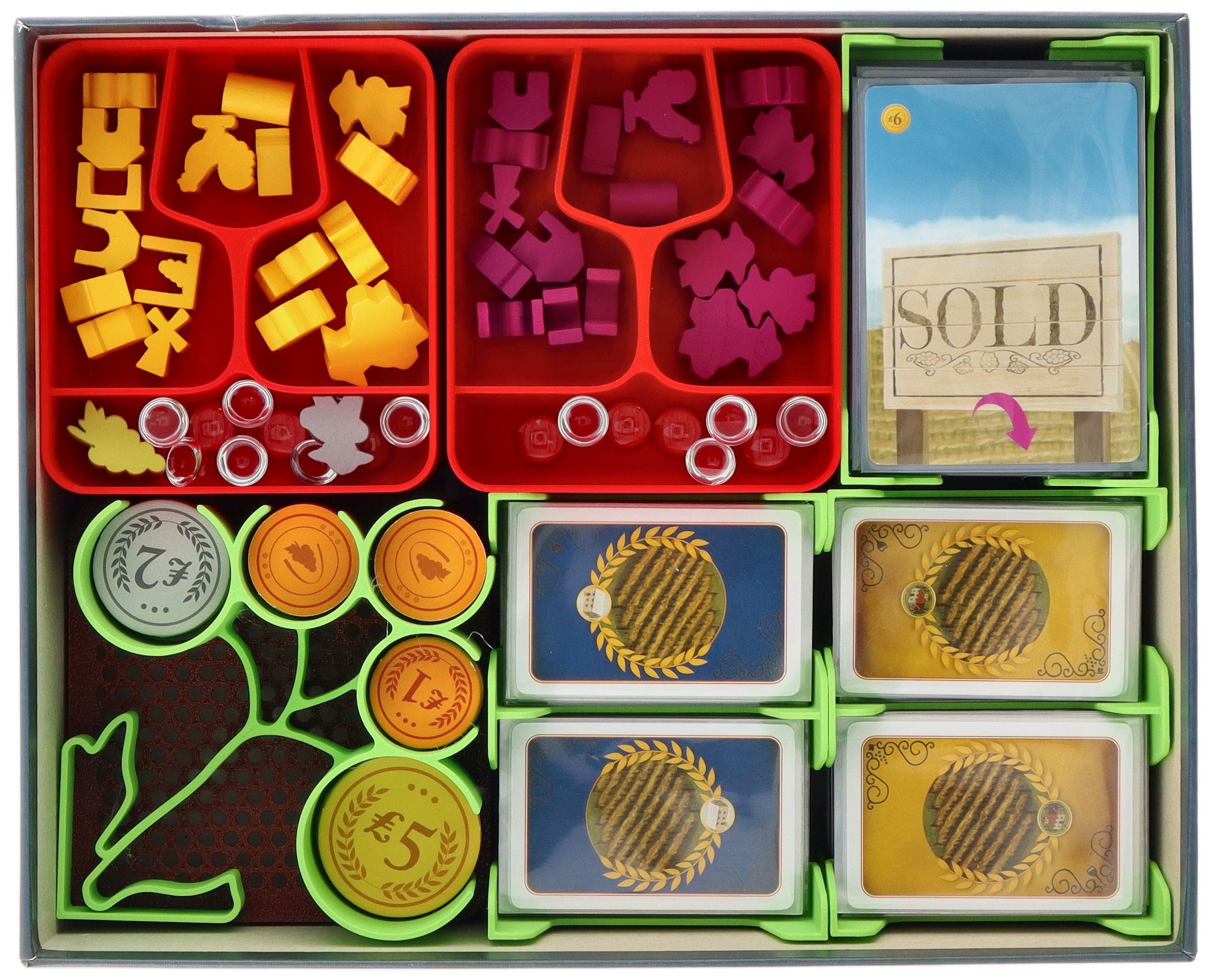 - L'Organizer in plastica si inserisce esattamente nella scatola originale di Viticulture: Essential Edition (dimensioni dell'Organizer: circa 285 x 210 x 75 mm).